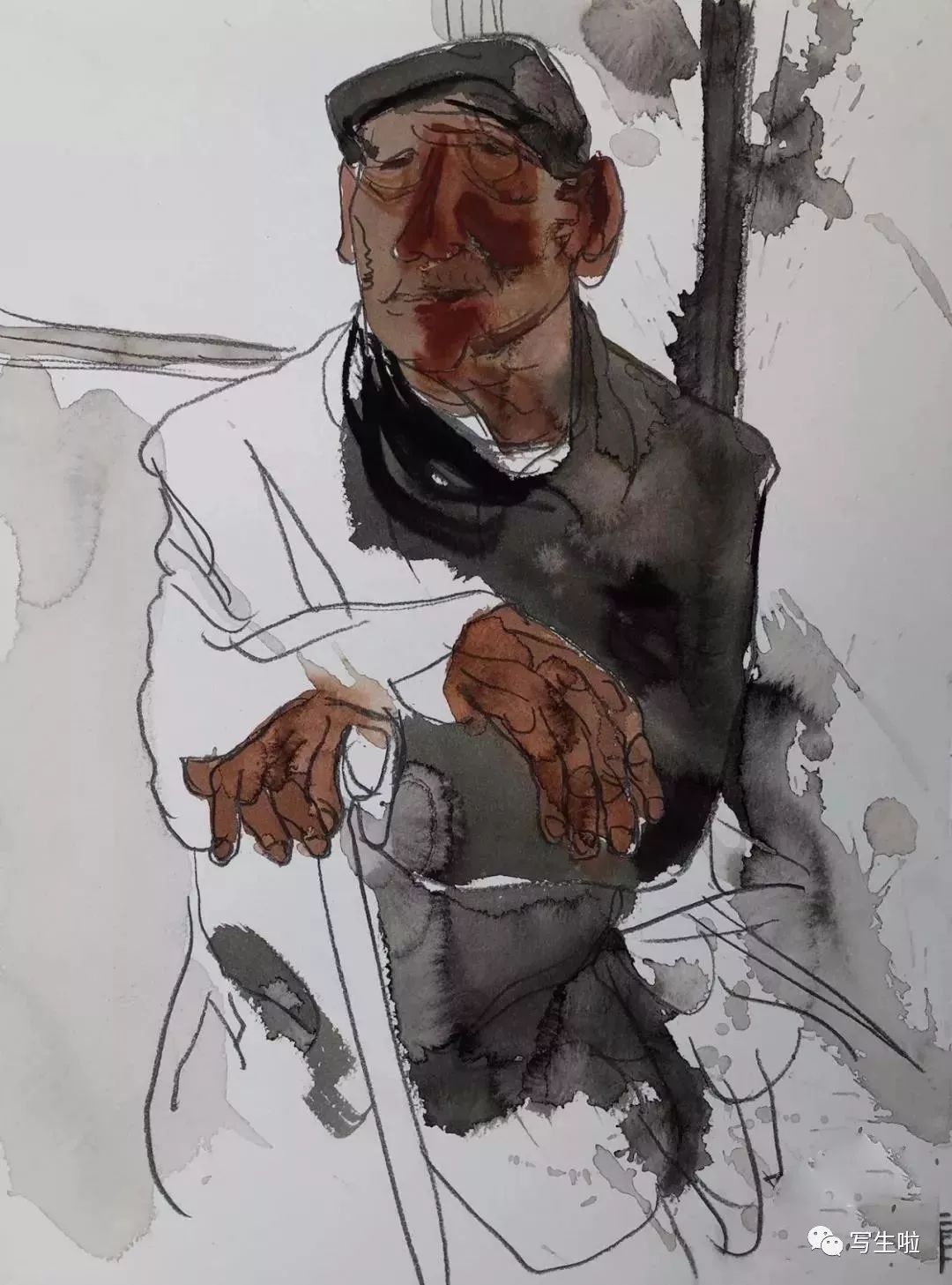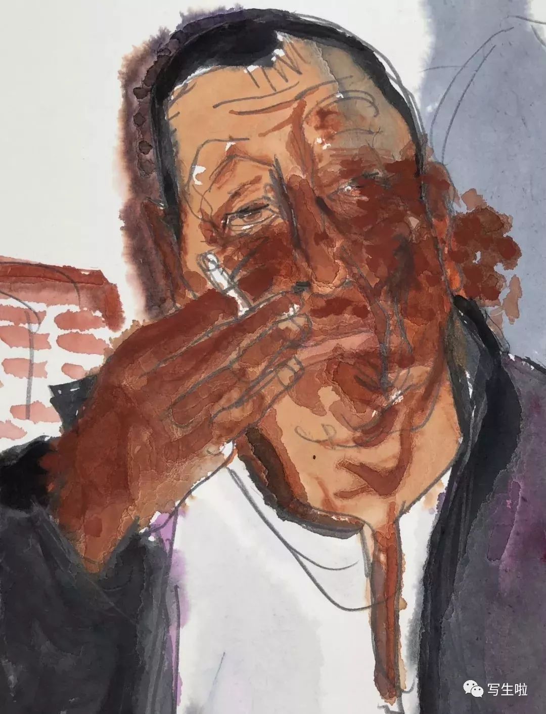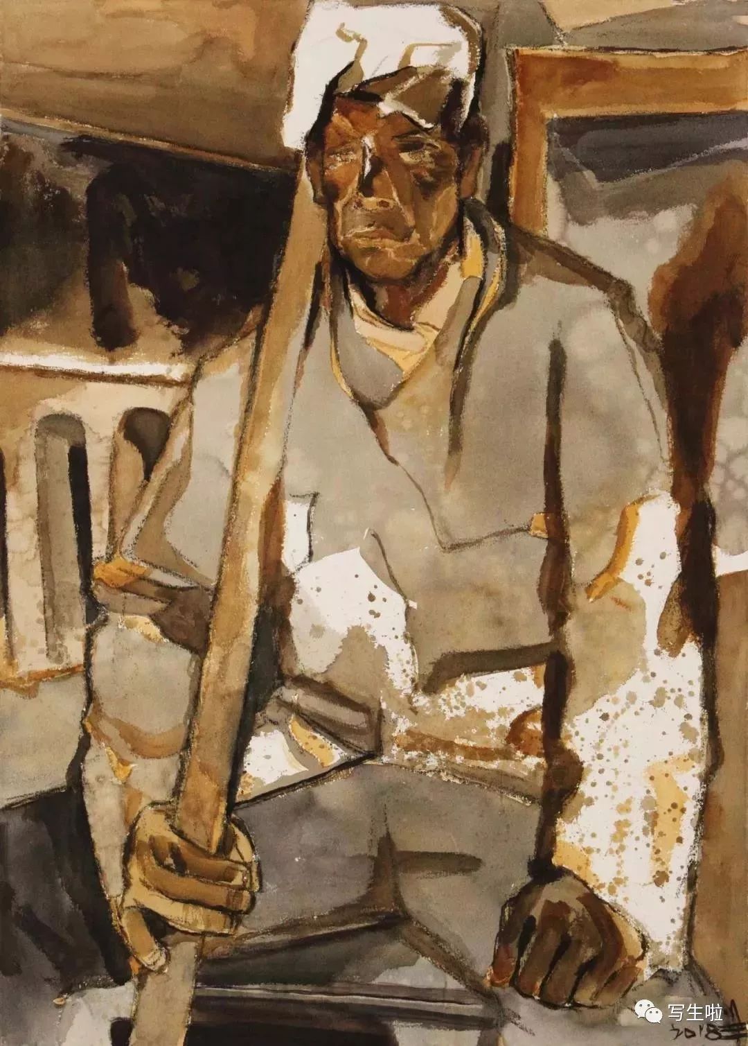 《拿烟斗的庄稼汉》/ 纸本水彩 / 105x75cm / 2018