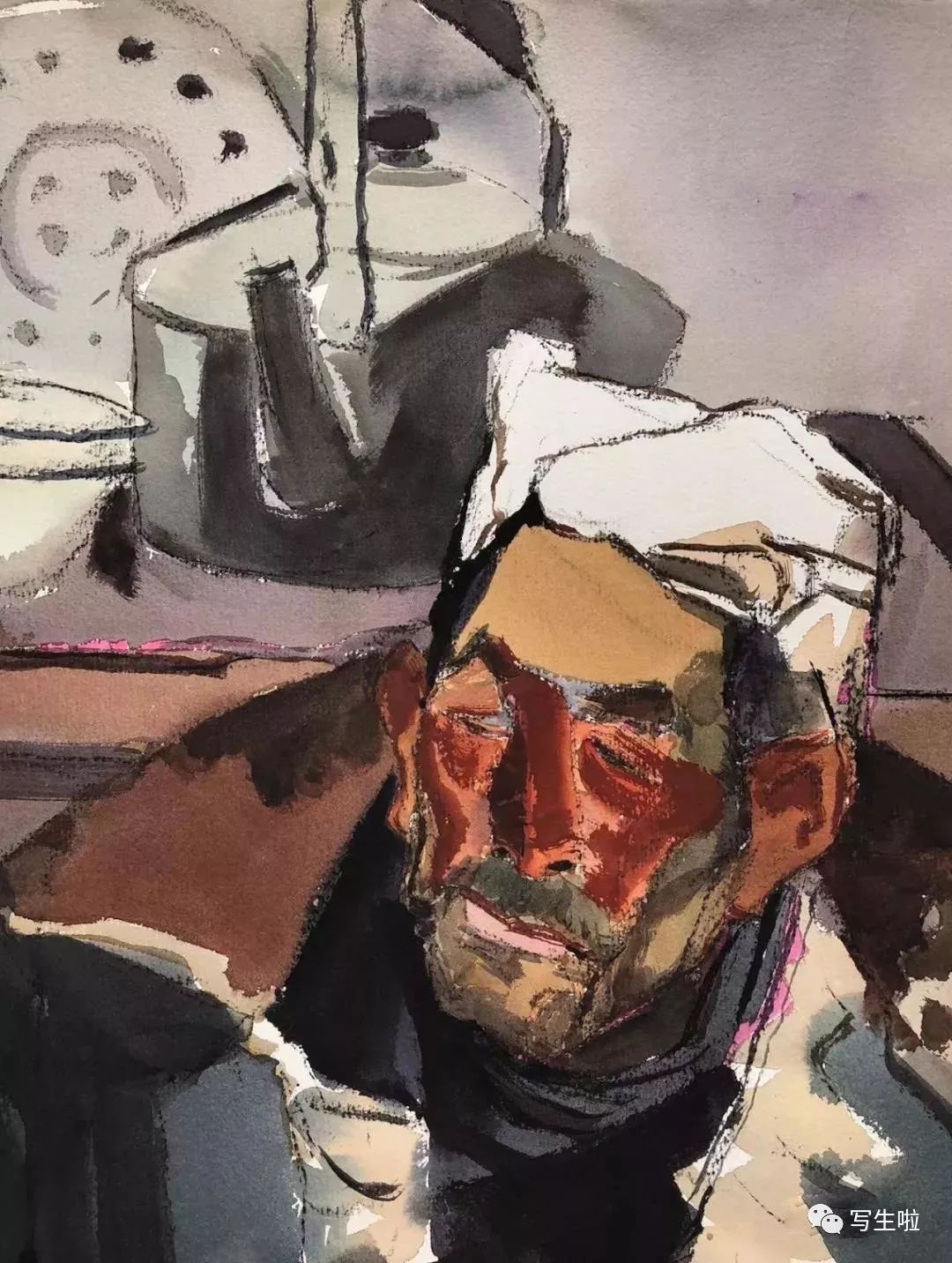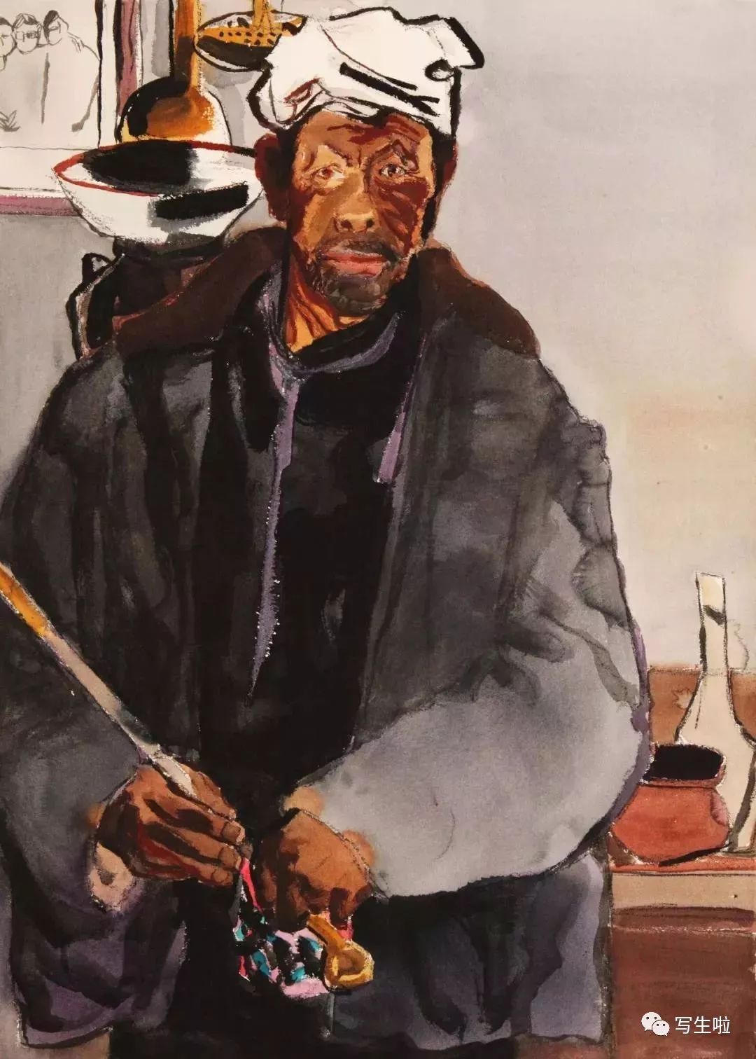 《绥德汉》/ 纸本水彩 / 105x75cm / 2018