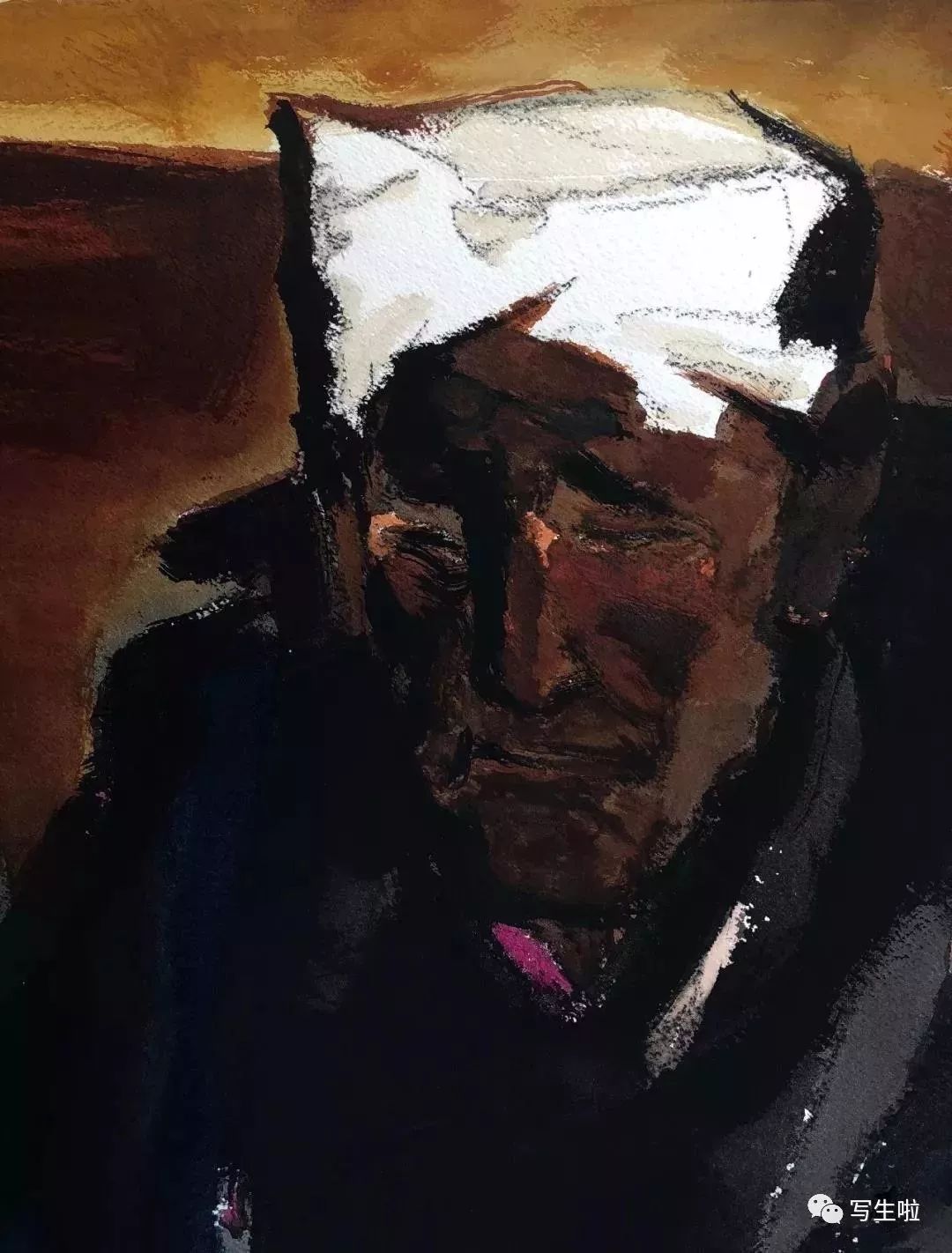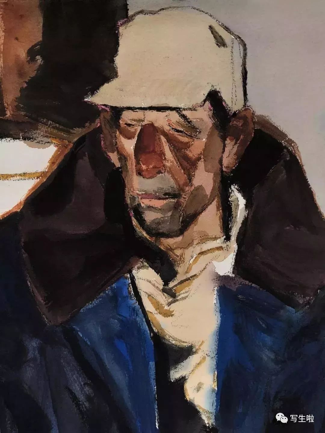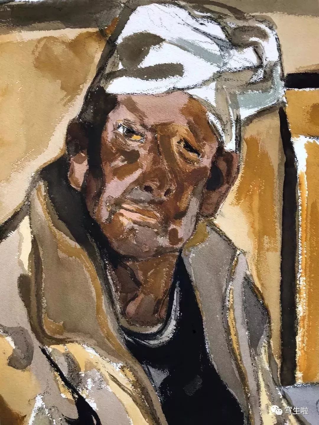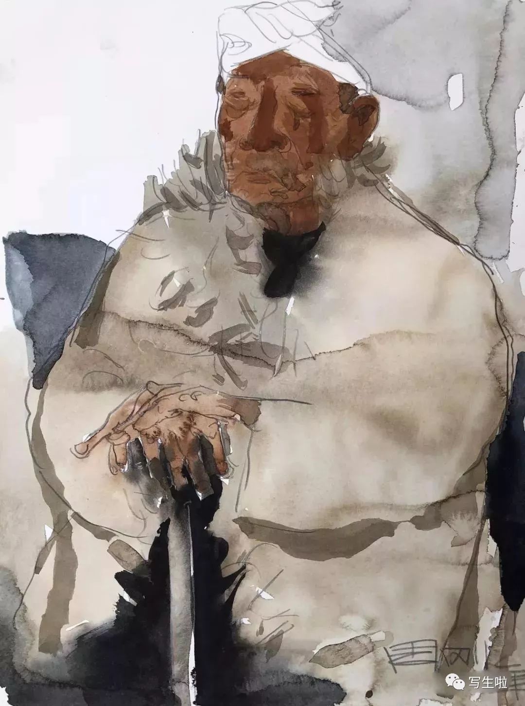 《陕北老汉》/ 纸本水彩 / 105x75cm / 2018