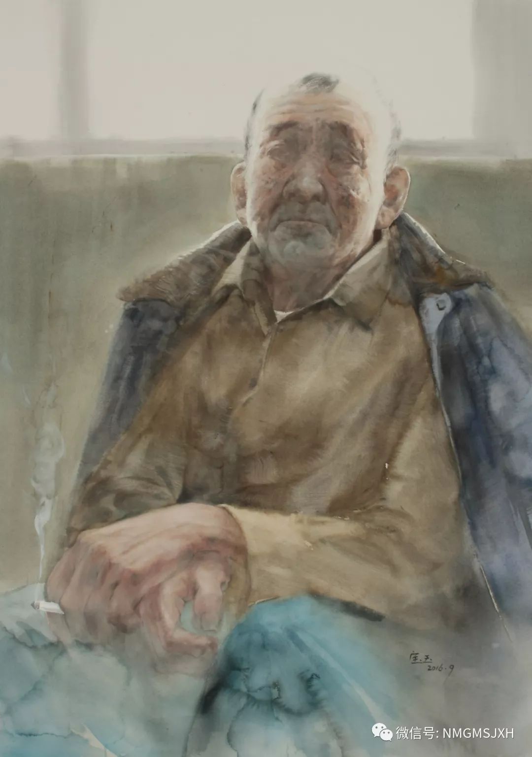 水彩画 《锡盟老阿妈 》 亚运 呼和浩特