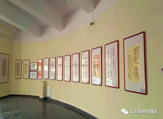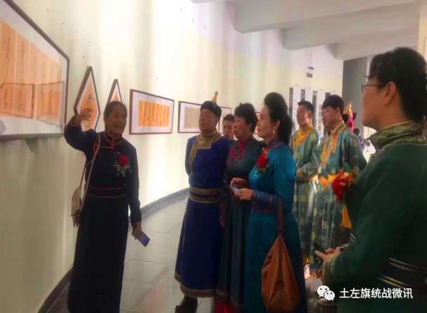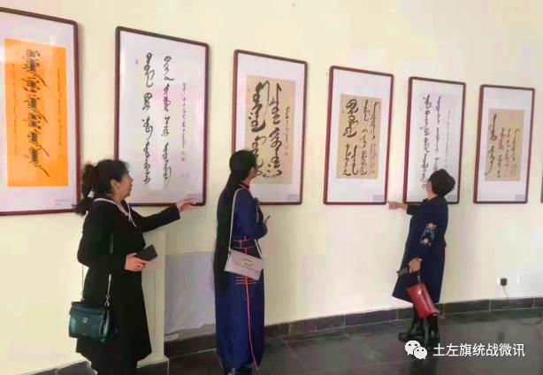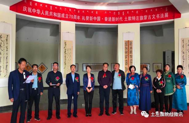 为庆祝新中国成立70周年,近日“礼赞新中国·奋进新时代”土默特左旗蒙古文书法展在土默特博物馆开展。