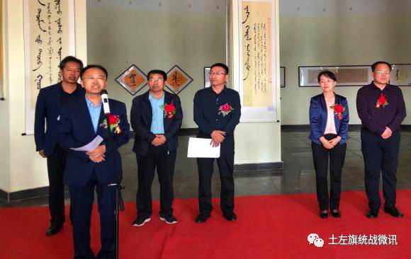 旗委副书记、宣传部部长云丽琴,旗委常委、统战部部长刘永春,旗政协副主席崔岩军等领导和来宾出席了开展仪式。参加本次开展仪式的还有我旗蒙古语会话班和民族中学的师生,旗书协会员和蒙古文书法爱好者以及关心支持文艺和民族工作的社会各界人士。旗委常委、统战部部长刘永春同志宣布“礼赞新中国·奋进新时代”土默特左旗蒙古文书法展开幕。