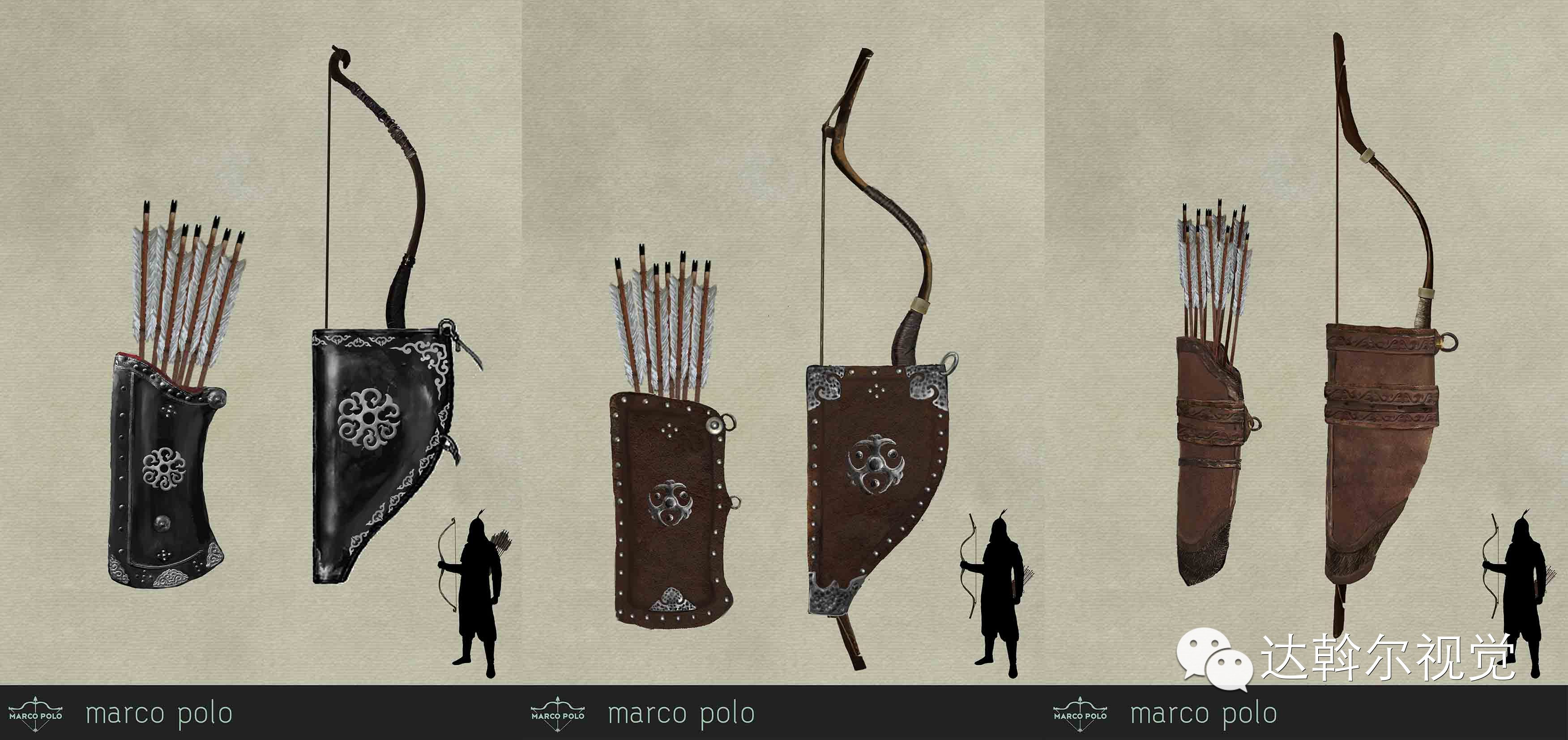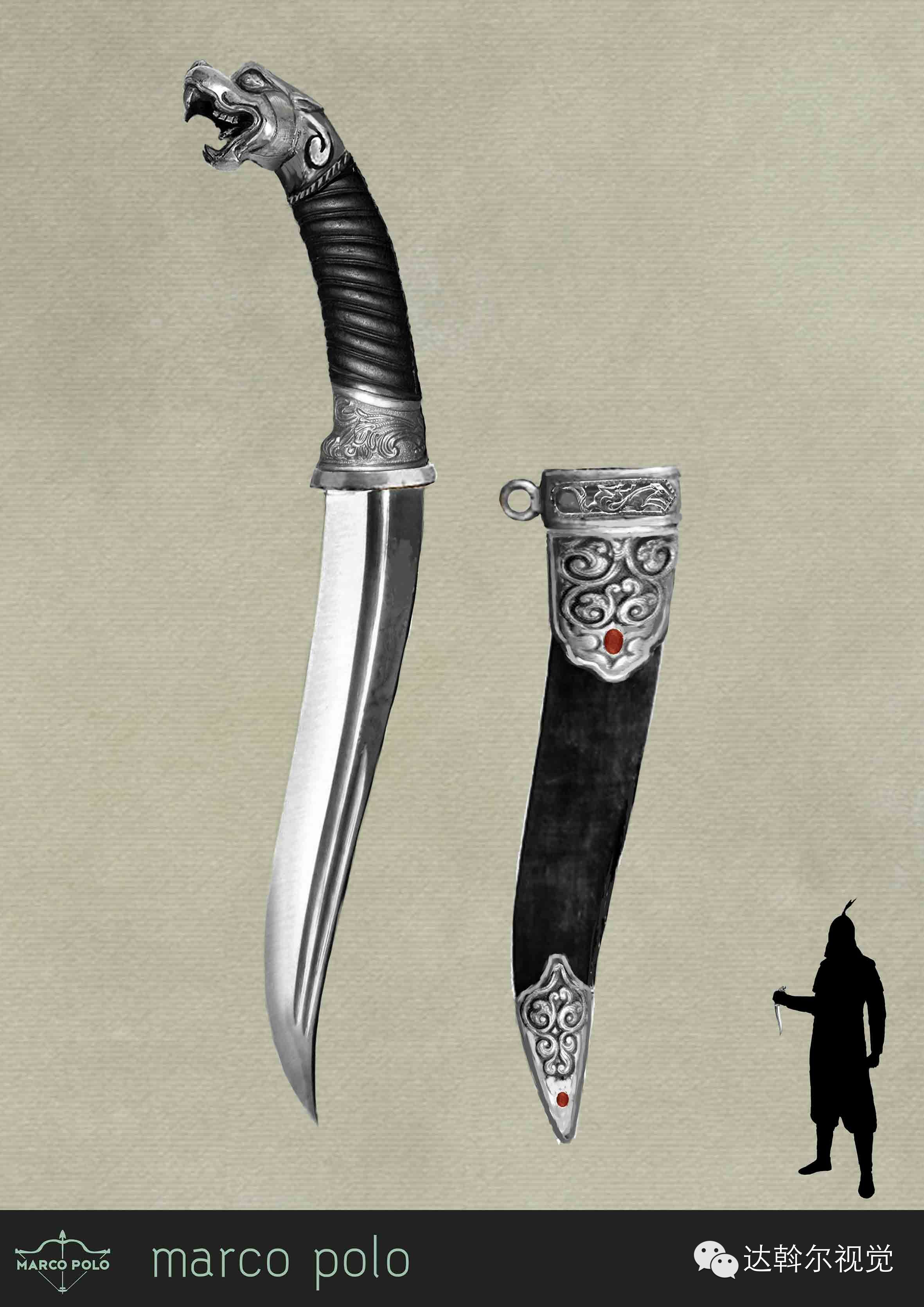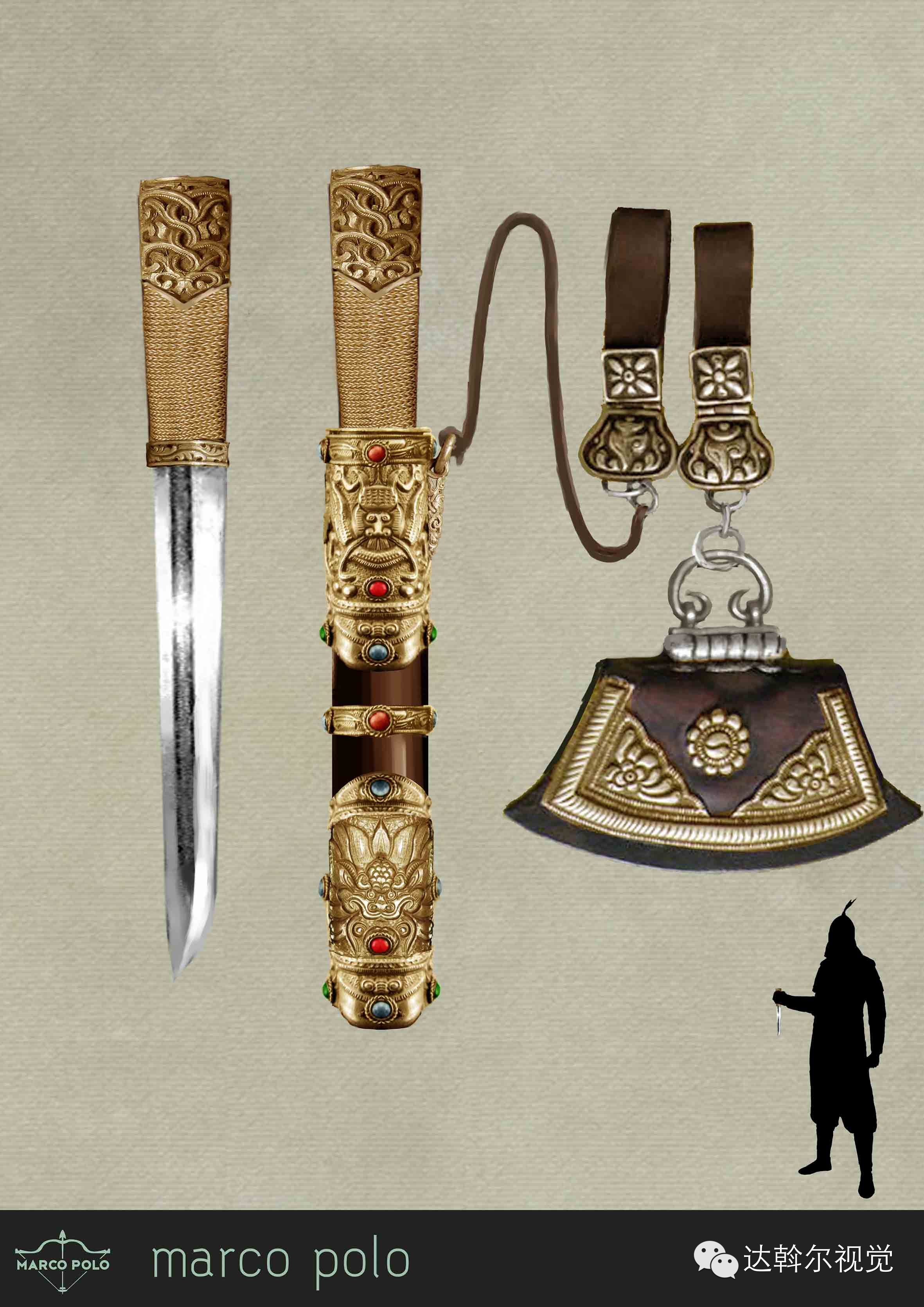 年初,一部叫马可.波罗的美剧正在筹备,虽然是美剧,但是美国团队对中国文化了解不足,所以美术部门来自中方,又因时代背景是元代,美术组还要精通蒙古文化。本人虽是达斡尔族,但成长在呼伦贝尔,多年游牧文化的耳濡目染让我对骑兵的设计颇为顺手。经朋友推荐,本人在团队中担任蒙古方面的兵器设计。
