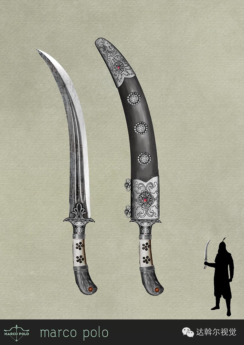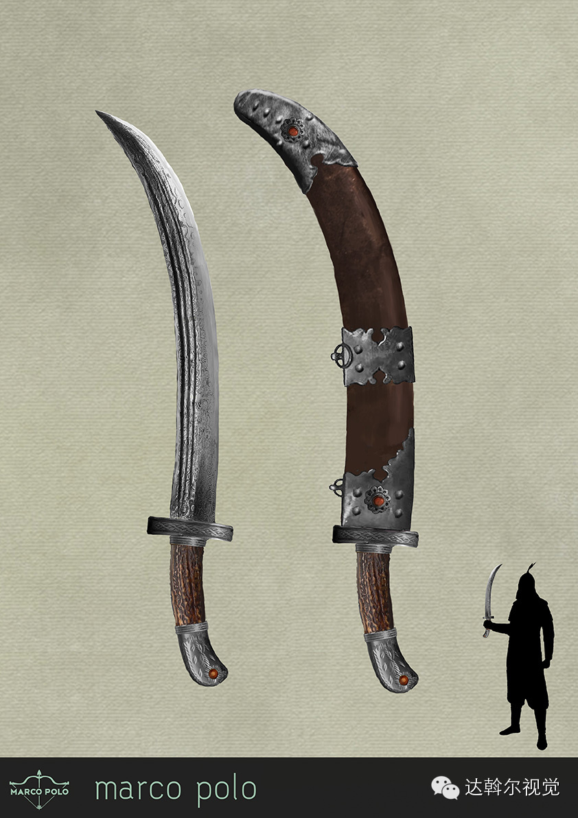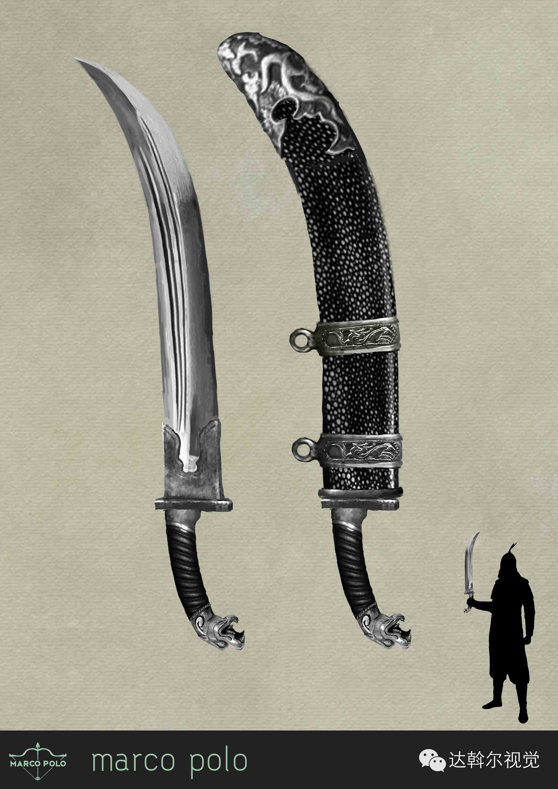 年初,一部叫马可.波罗的美剧正在筹备,虽然是美剧,但是美国团队对中国文化了解不足,所以美术部门来自中方,又因时代背景是元代,美术组还要精通蒙古文化。本人虽是达斡尔族,但成长在呼伦贝尔,多年游牧文化的耳濡目染让我对骑兵的设计颇为顺手。经朋友推荐,本人在团队中担任蒙古方面的兵器设计。