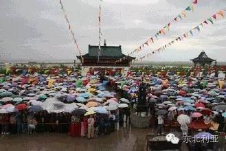 松原市前郭尔罗斯法会上,包括朝鲜族在内的各族信众冒雨参加