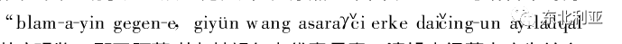 如翻阅善巴所写这部史书,其《序》以对成吉思汗黄金家族的祝福开篇,而其《跋》仍以同样的内容收篇。该书一开始就写道: