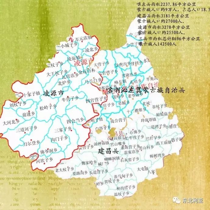 原喀喇沁左翼旗旧地包括今天的喀喇沁左翼蒙古族自治县,建昌县和凌源市。