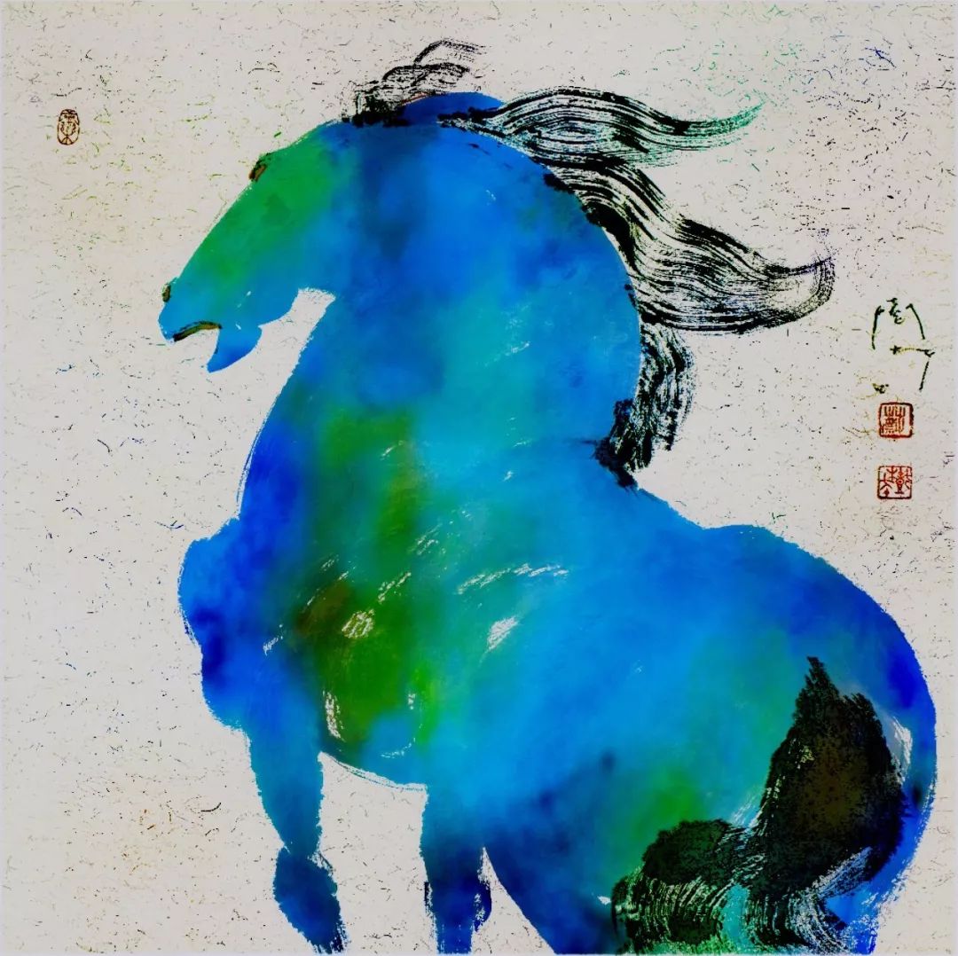 《蓝骥》丨宣纸彩墨 70X70  2016年