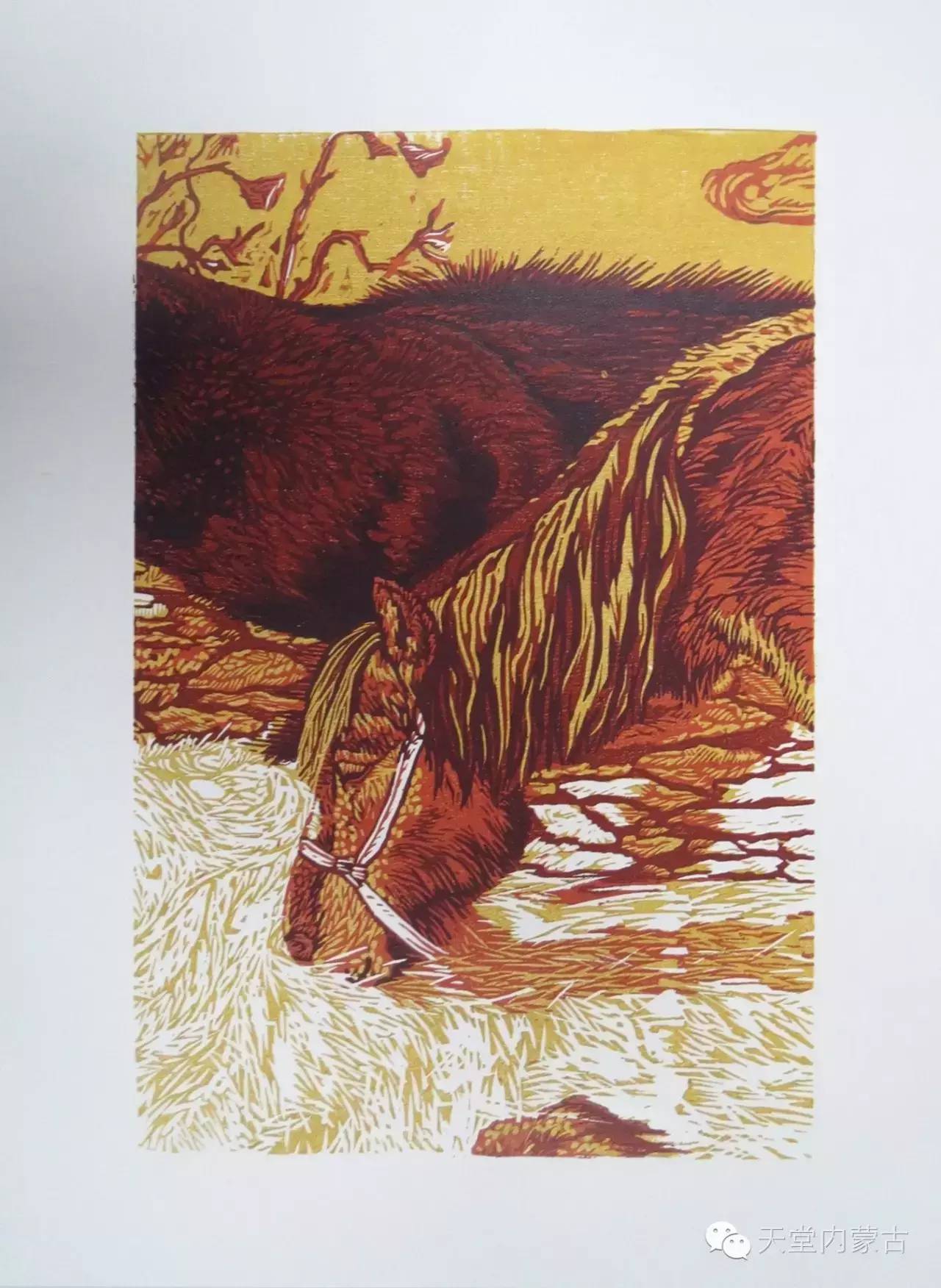 2014年 版画《博克沁》 《寻草原》入选中国第四届大学生艺术作品展