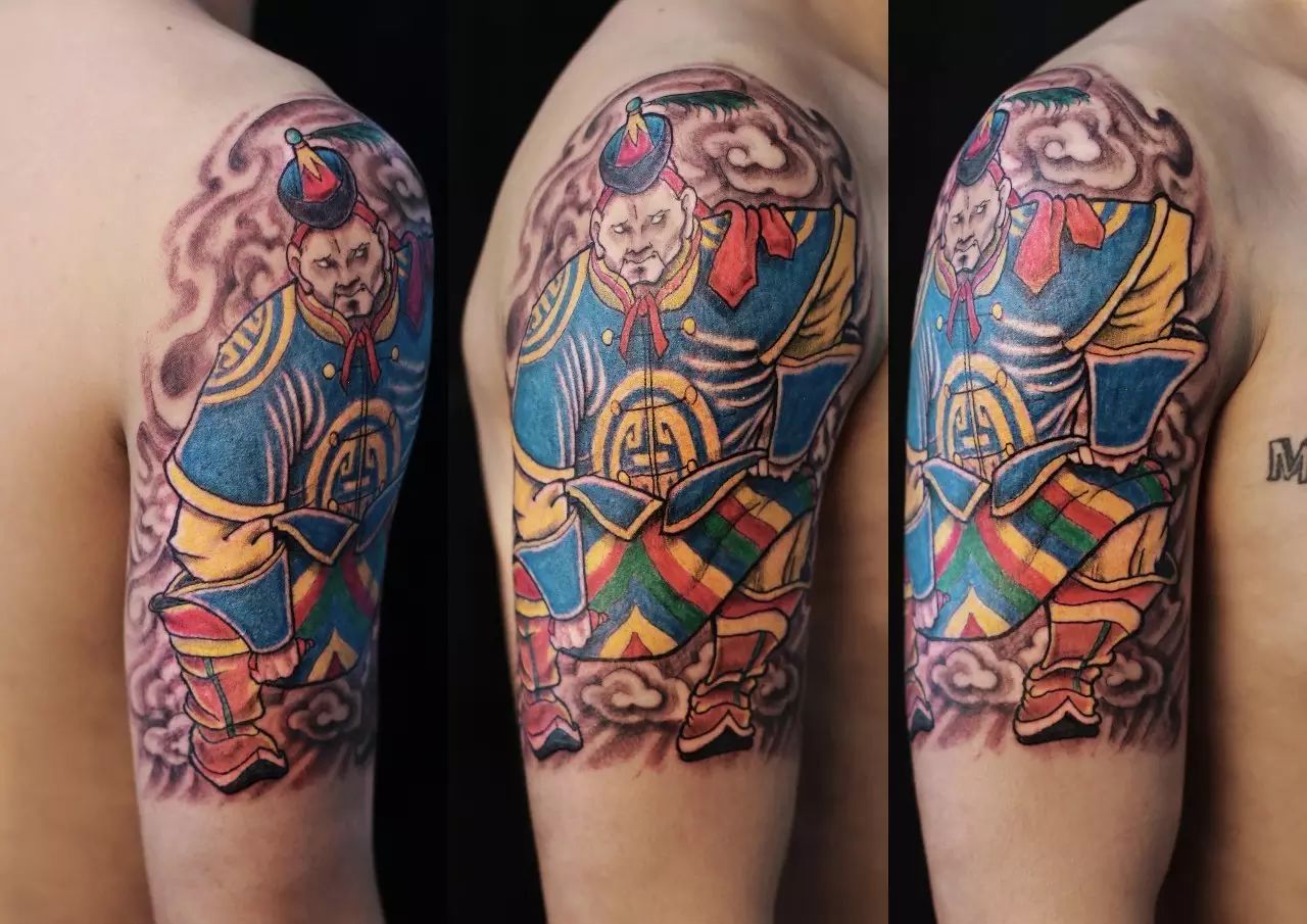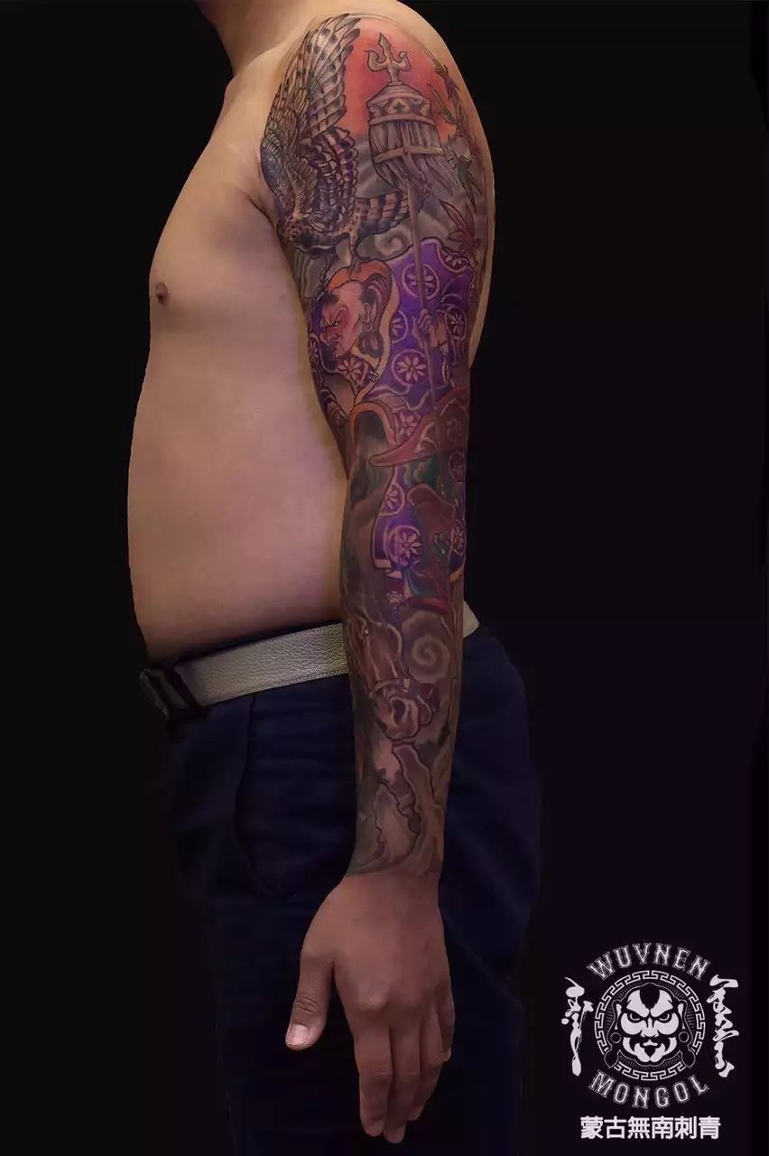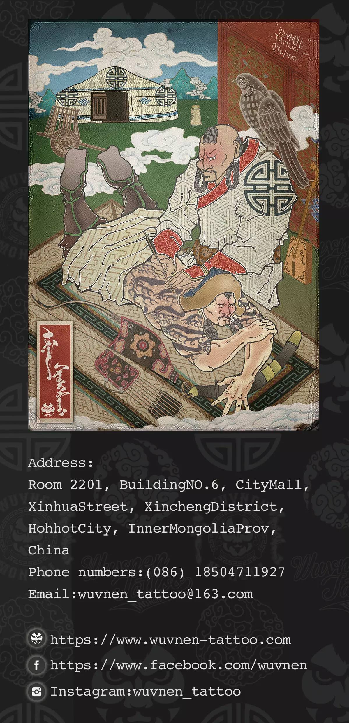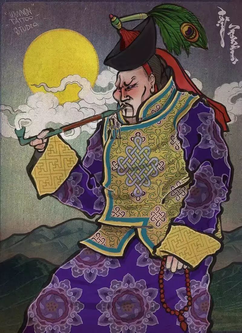 蒙古王爷这一经典形象出自無南刺青掌门人 —— 伊德尔老师之手。王爷不仅被呈现在皮肤上,