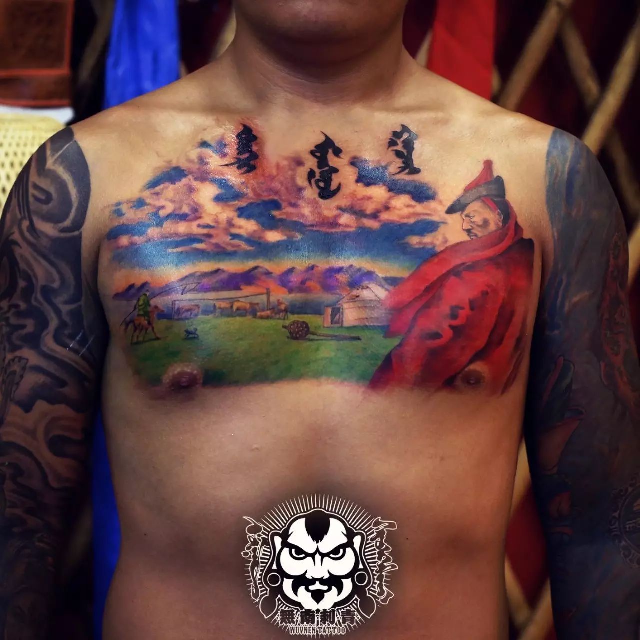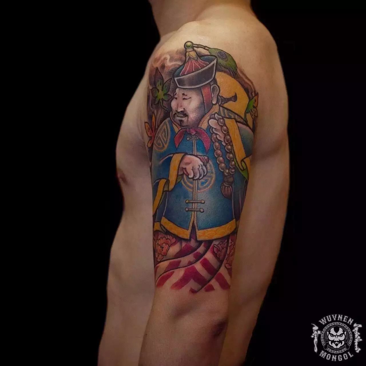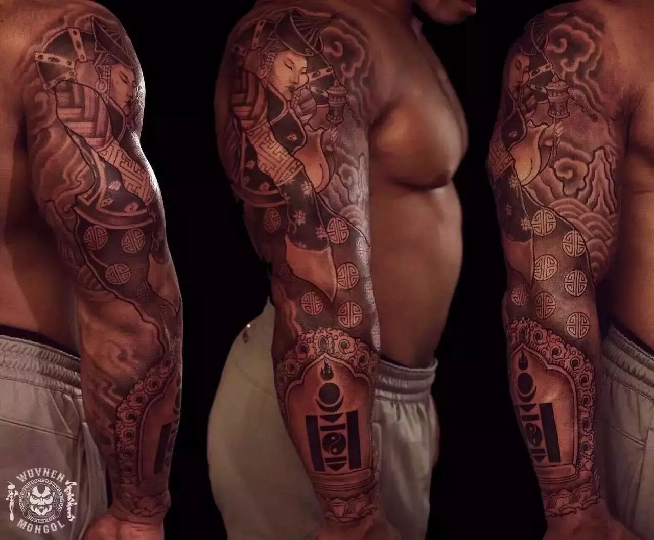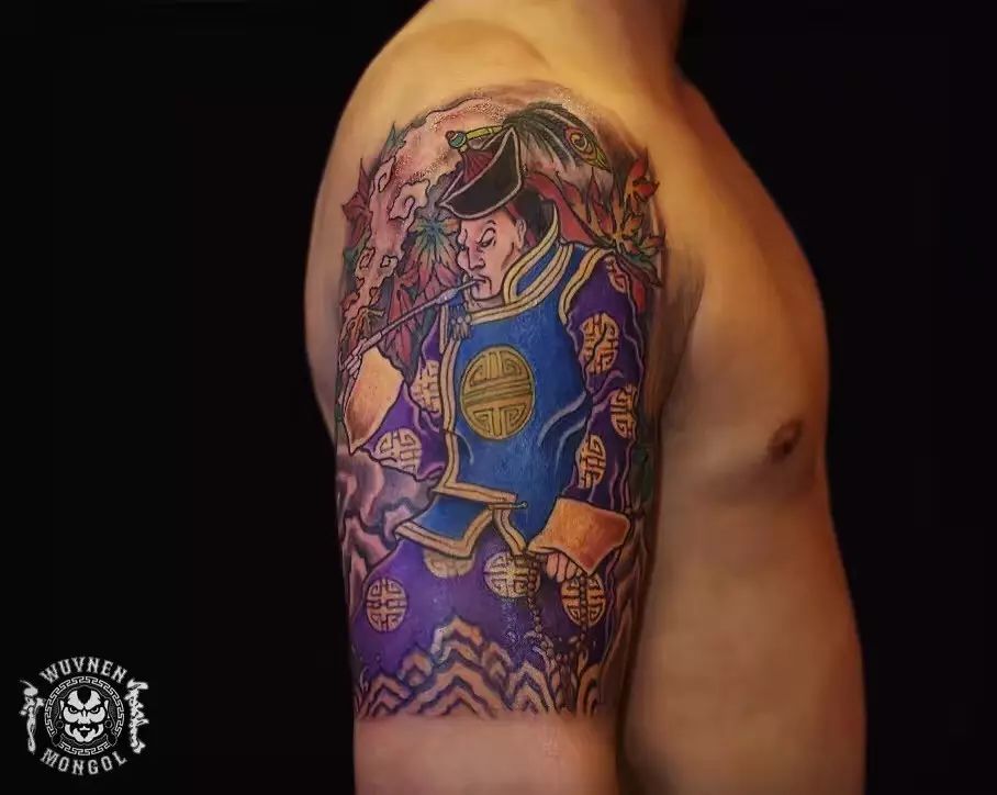 蒙古王爷这一经典形象出自無南刺青掌门人 —— 伊德尔老师之手。王爷不仅被呈现在皮肤上,