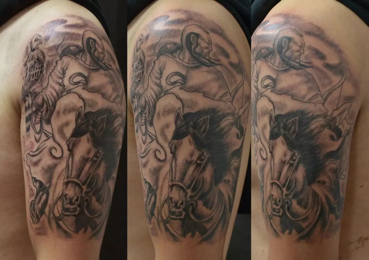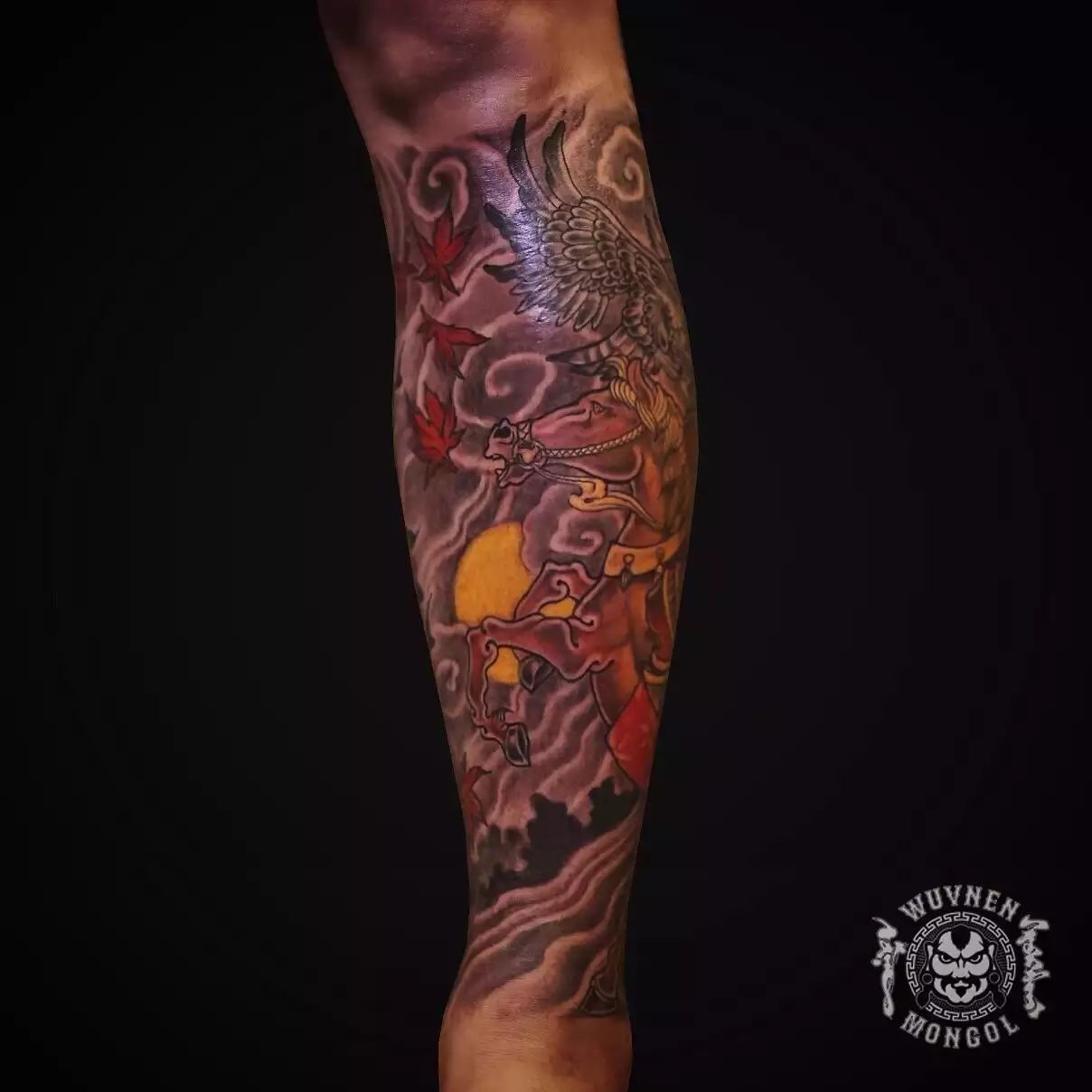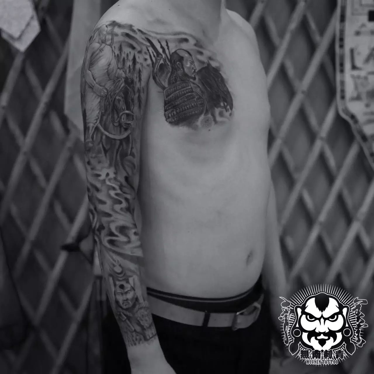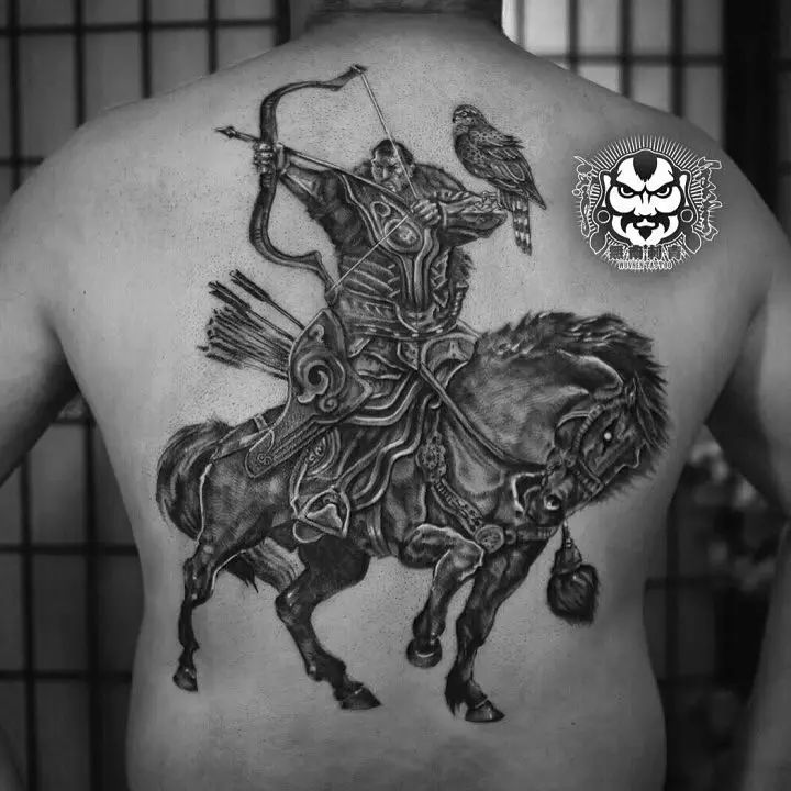 蒙古王爷这一经典形象出自無南刺青掌门人 —— 伊德尔老师之手。王爷不仅被呈现在皮肤上,