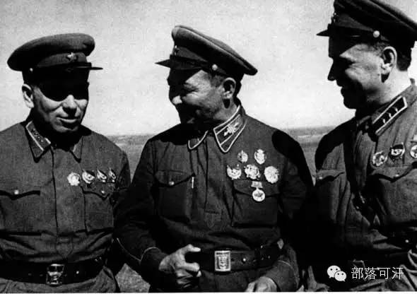 诺门坎战役期间,朱可夫(左)与蒙古人民军元帅乔巴山(中)在一起