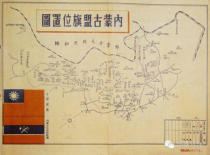 左为“蒙疆联合自治政府”旗,右为“蒙古自治邦”时期旗帜