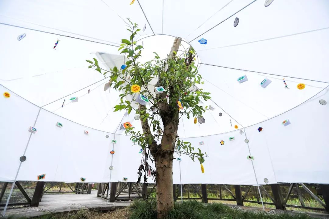 作品“Ger”放置在段家大院外面池塘中的一个“湖心岛”上,艺术家搭建了一个代表蒙古人居住场所的蒙古包,并在里面放置了99份由蒙古残疾人协会制作的礼物,99个礼物里面也包含了99个愿望,展览期间观众可以拿着自己的礼物进行交换,构建一个蒙古和中国文化交流的场所。