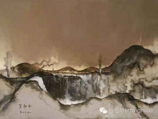 即使如此,即使真的像不会画了,也不必然就能获得无债一身轻的新生,何况,其实不能。那他说的“像不会画那样”是怎样的呢?2006年之后的作品中,我们能看出一种决绝:有时,他会把与这个动力偶然相遇时的片段,不假计较地、在新的意识下重新再画;有时,他会极度放任笔触、颜料的物质性,让它们的物质性强大到失控,任何刻意的形象都无法对它形成控制,这时他手下掌握的即非变形的人或风景,也不好说是现实的意象。像风卷云动中,偶然联想的图形,像山,像水?烟囱,城市,或海水?是工业废墟,是我们的末日环境?荒诞感,幻灭感?可能都是,因为这些都与我们的知识、经验联系着。那么,他到底在画什么?他在接连画着那些荒凉风景过程中,也许是在检验着,他手里留下的究竟是些什么?什么是不能剥离掉的?在一步一步的推进中,画幅在加长、增多,他要从画面充满动荡的生长中逼迫出另一种自主。