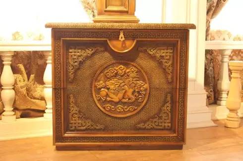采用纯木料制作精美民族图案与现代款式完美结合的经典箱柜、桌椅、床具。