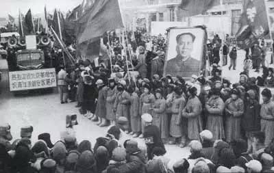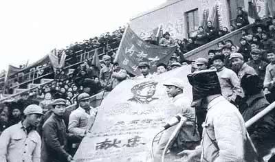 “下定决心,不怕牺牲,排除万难,去争取胜利!”——赴东乌旗沙麦公社的知青重温领袖教导,以壮行色。