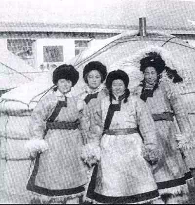 实在等不及了,没腰带也凑合着照一张吧——赴东乌旗呼热图诺尔公社阿拉坦额莫勒队的知青金萍、杜宏泽等在锡林浩特试新装留念。