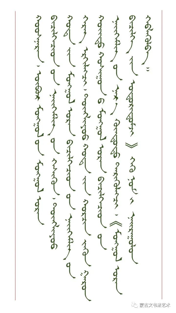 好斯那拉篆书作品欣赏(转发请注明来源) 往期回顾图雅蒙古文书法(一)ᠬᠣᠣᠰᠨᠠᠷᠠᠨ ᠤ᠋ ᠬᠤᠯᠤᠰᠤᠨ ᠦᠵᠦᠭ ᠤ᠋ᠨ ᠪᠢᠴᠢᠯᠭᠡᠴᠢᠩᠭᠢᠰ ᠤ᠋ᠨ ᠪᠢᠯᠢᠭ᠌ ᠰᠤᠷᠭᠠᠯ 赞0踩0打赏☆收藏0