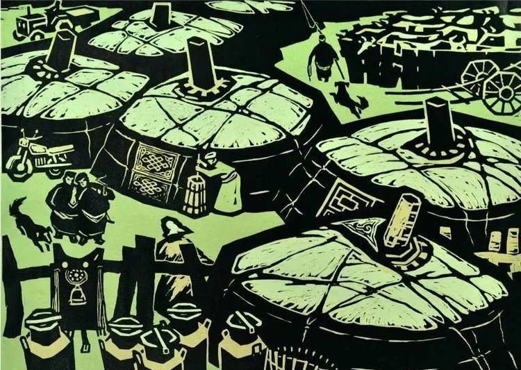 《栏边》作者:包丰华自从上世纪五六十年代版画在科尔沁草原扎根以来,便显示出强劲的生命力,独特而浓烈的草原民族的风情、风俗、风貌,为学院派所带来的版画创作手段提供了源源不断的生活素材,渐渐形成了“科尔沁版画”粗犷、豪放、热烈的画风,在国内美术界影响渐远,到上世纪八十年代达到高峰。“科尔沁版画”不仅屡次在国内获得大奖,仅在上世纪八十年代就两次进京,在中国美术馆举办版画展。上世纪八十年代,通辽成为国家最早命名的四个“版画之乡”中的一个。