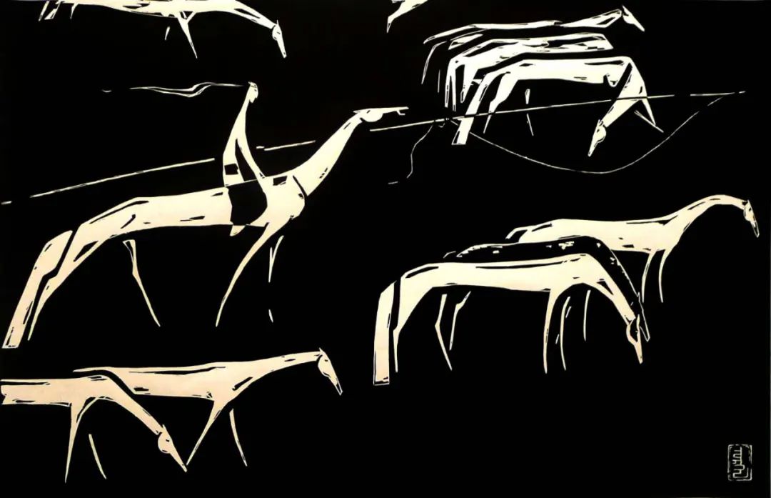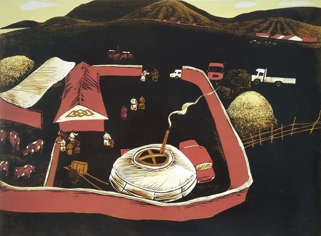 版画《玛拉沁艾力》(绘制:吉日木图)