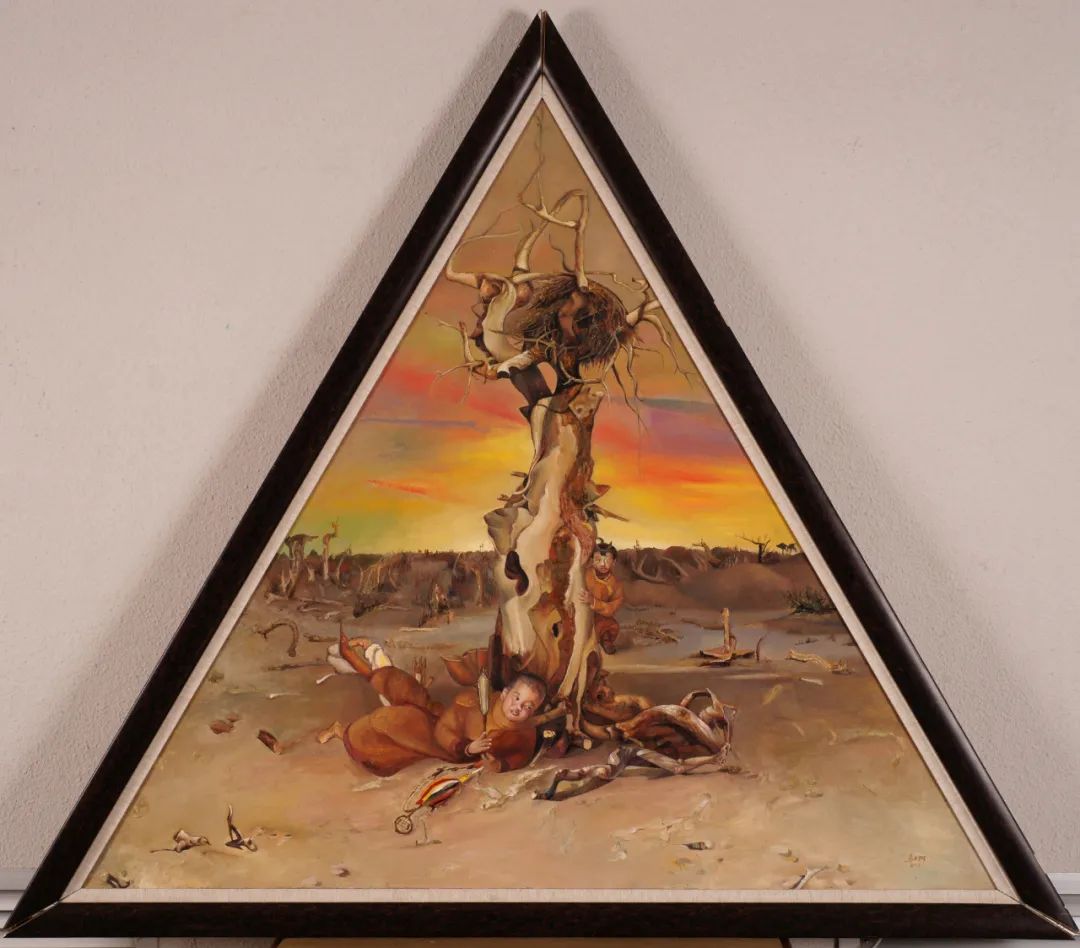 人声嘈杂如鼎沸一般,但大师脸色恬然,一副处乱不惊的神态。那天,秋阳正浓,天地似乎撒满了淡淡的倦意。我俩也懒洋洋地站在阿拉善大漠上的一条胡杨沟前,共同观看大师手中电脑上的这些画作。大师灵巧地滑动着屏幕,一幅幅胡杨油画出现在屏幕上。我探头看着,还以为是那位俄罗斯油画家的大作,我问大师,这是谁的画?大师告诉我这是一位年青人的画作,还就是咱呼市的。我有些吃惊,禁不住多看了几幅,竟然有点倒吸几口凉气的感觉。