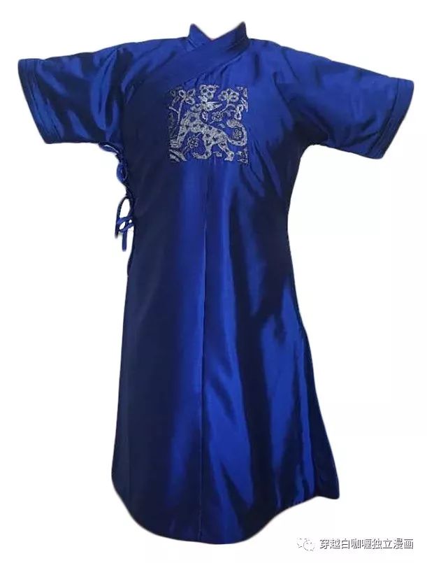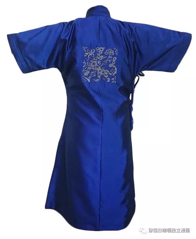 (2019.4.15 by wuyukun蓝色绸缎半袖银色双面纳石失褡护背面)