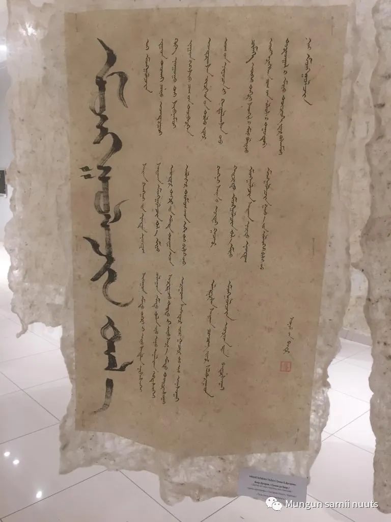 本期介绍的是巴雅尔.道格尔夫2020年2月18号—29号期间在布里亚特共和国现代艺术博物馆展出的蒙古书法作品。