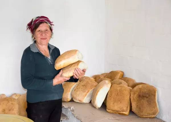 烤炉不大,在屋子中间,每次只能放得下一块面包,女人用铁铲把烤得实称的大面包取出,走过之处便是麦子的香气和火焰的余热。屋子不需要太多灯火,孩子们围坐在地毯上,眼神像炉火一样明亮,女人双手在围裙上一抹,切下几片面包分给这些饿着肚子的“贪心食客”。在满足的咀嚼和吧唧声中,她转身和面,准备下一炉列巴的诞生。窗外,高高的樟子松树落满了冬雪。