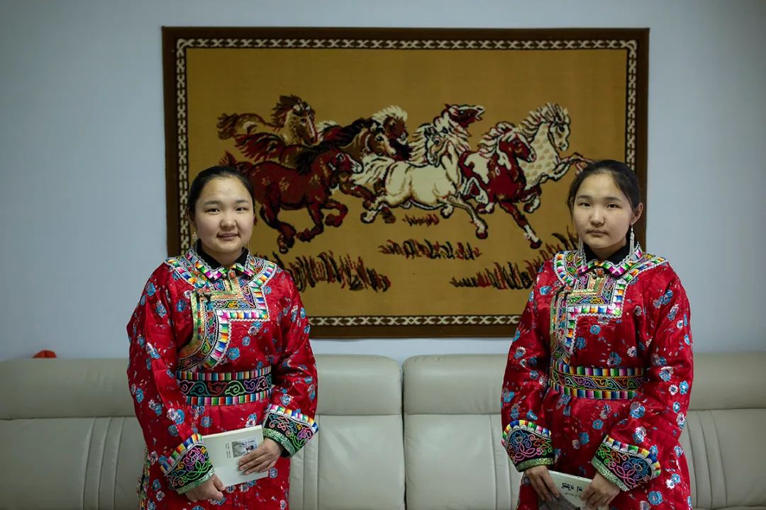 双胞胎姐妹艺如、乌英嘎,1999年2月16日出生于内蒙古东乌旗乌里雅斯太镇,2018年2月拍摄。