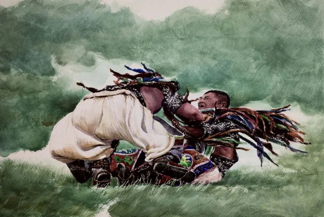 巴图和巴雅尔两位著名摔跤手经常会在决赛中相遇,这一次也不例外在决赛中相遇,他们彼此都非常了解对方的实力、也都输给过对方,可以说旗鼓相当。所以最后的较量就看谁能抓住对方的漏洞给予·击掉倒在地。