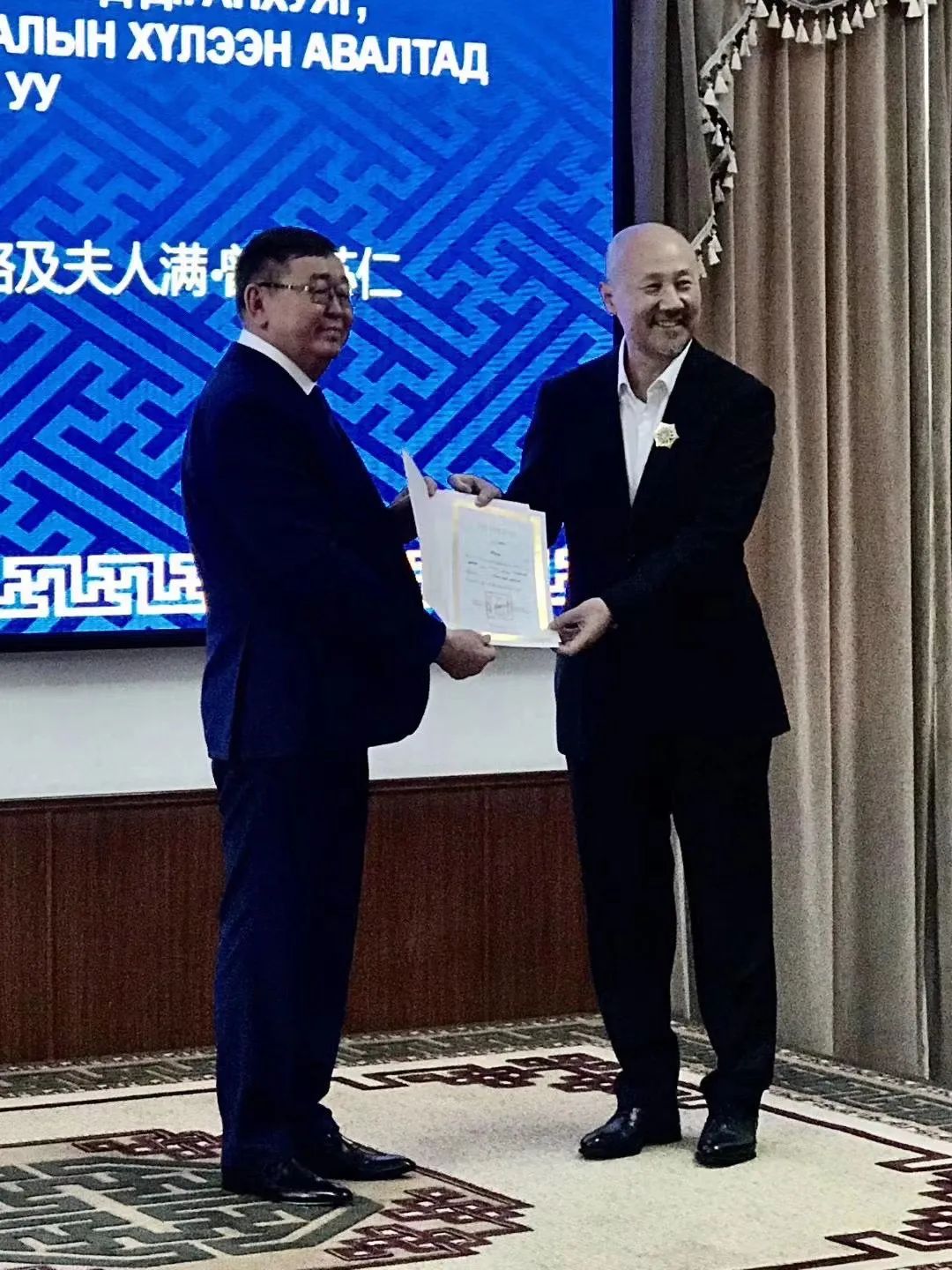 2018年3月12日代钦教授在参与中蒙合作学术研究项目赴蒙古国考察之际接受了本次颁奖。代钦感慨地谈到,“我非常高兴能够荣获蒙古国最高政府勋章‘北极星’,我感到我所做的学术研究和培养蒙古国研究生工作也许还没有达到勋章所给予的高度,但是我很年轻,努力发展的空间很大,从这个角度说,荣获勋章也是对我的一种期望和鞭策。我将继续为中蒙友好交流合作和蒙古族科技文化研究的发展不懈地努力工作,做出自己应有的贡献。这项荣誉虽授予个人,但是属于所有致力于该领域的专家学者和团队成员们。”