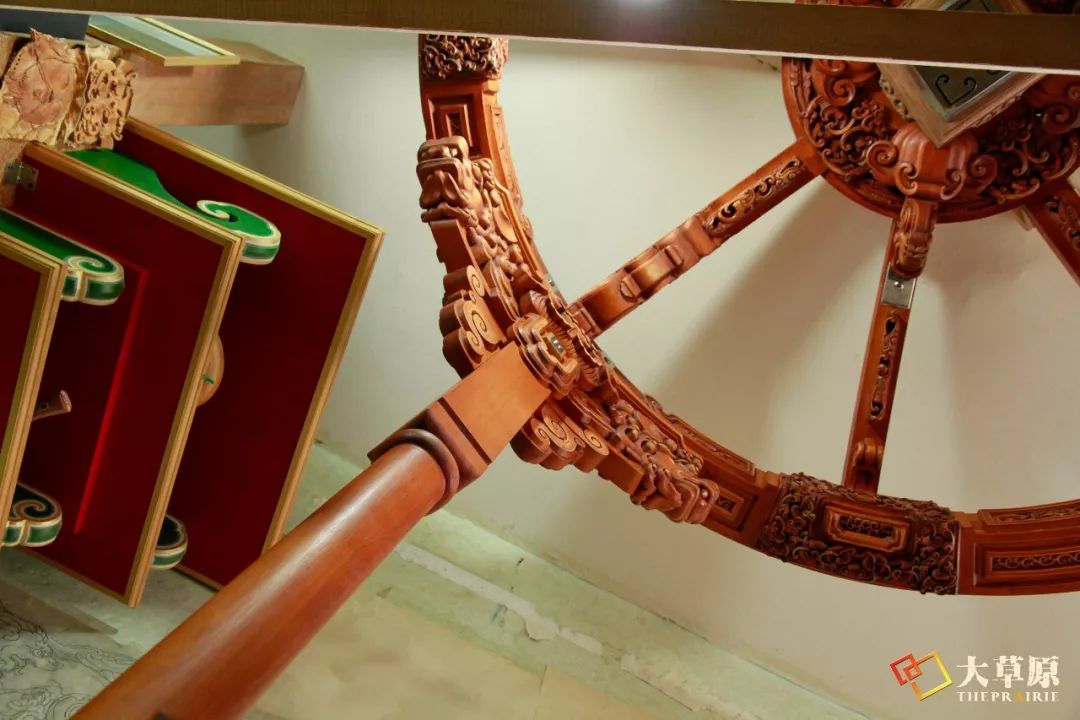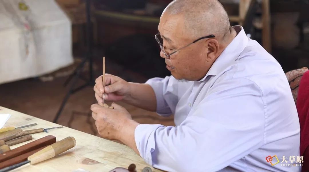 蒙古包是适用于游牧生活的一种建筑形式,对蒙古包怀着敬畏之情的雕刻师,双手执笔持刀,将画纸上的图案变成蒙古包、家具上的精美雕刻作品。