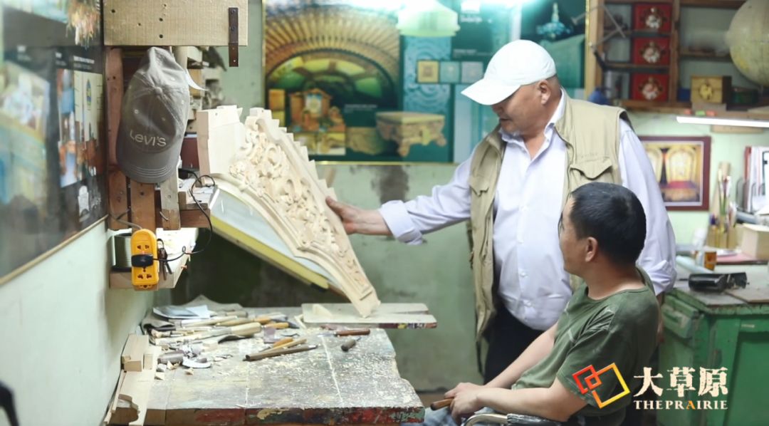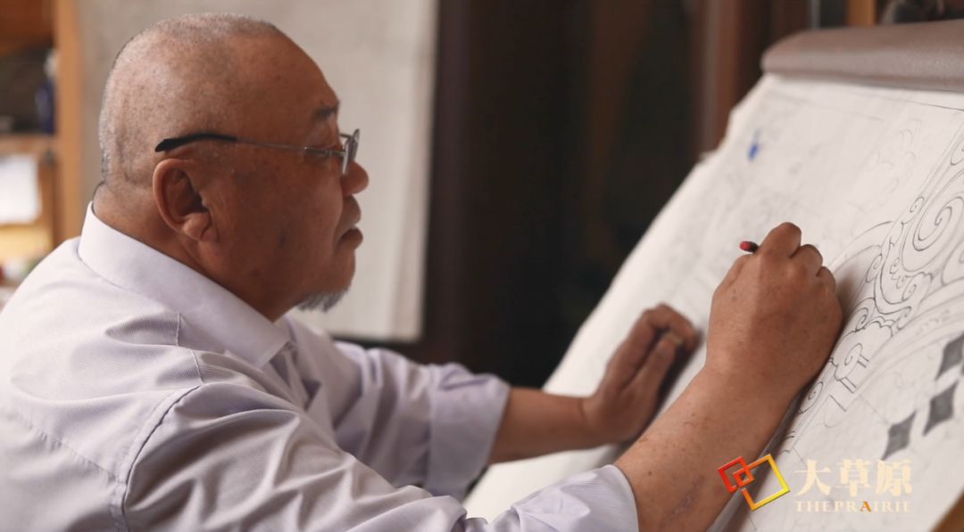 始终保持着对蒙古族生活方式的敬畏,巴桑道尔吉的双手即执笔又持刀,将画纸上的图案变成蒙古包、家具上的精美雕刻作品,他的作品装点着每个家庭的生活,也见证着蒙古族在草原上的迁徙来往……
