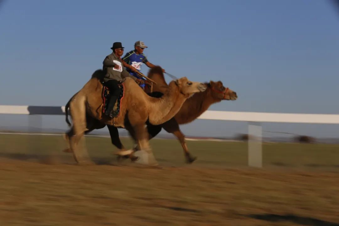 在放牧时,他们三五成群,挑选自己强健的骆驼相互赛跑,以展示骆驼素质为乐趣。后来,每逢节假日、婚宴、祭祀敖包,以及召开那达慕大会,居住在草原、沙漠戈壁的蒙古族牧民都把骆驼比赛作为一项重要的喜庆活动。