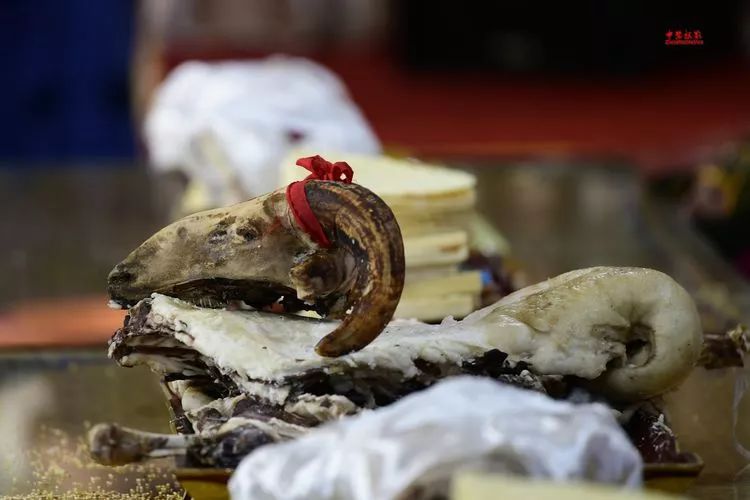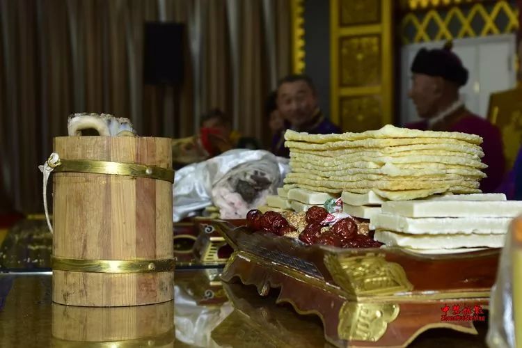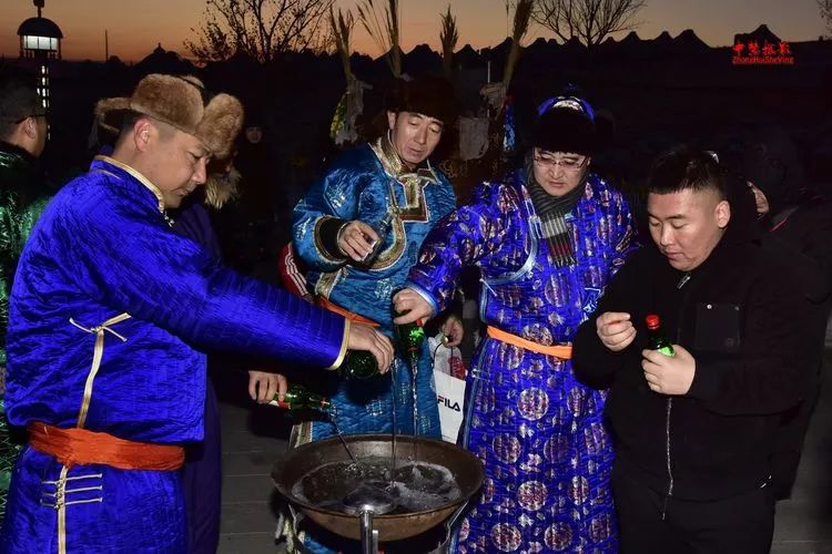蒙古族祭祀火神要用羊胸叉、奶食品、酒等供品。通常在胸叉内填满红枣、黄油、冰糖、奶酪、柏叶、哈达等,用白色羊毛线缠绕九圈后煮熟。