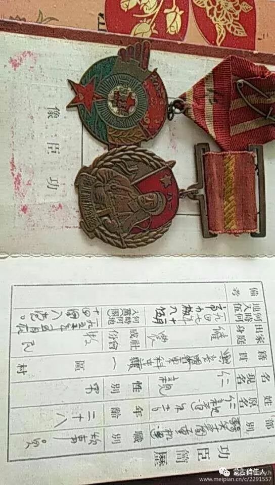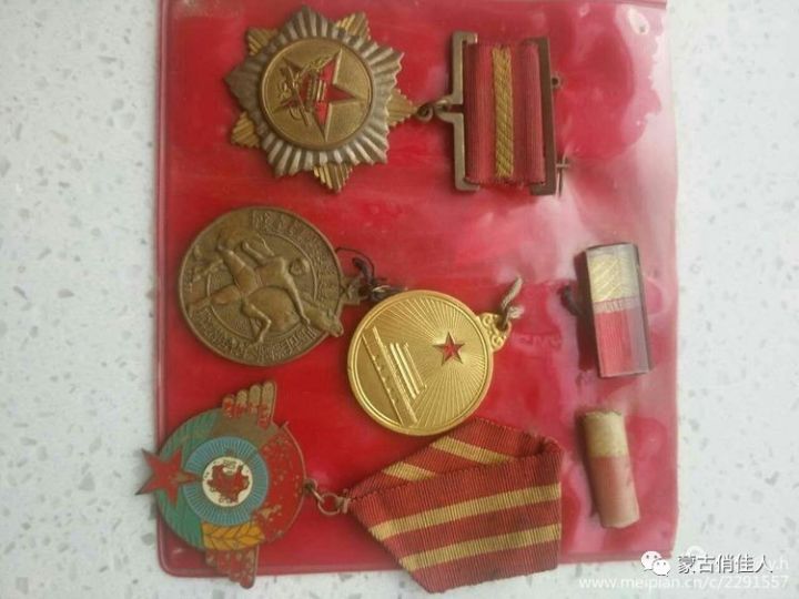 俄木车(白金山)出生于1921年,1945年从辽宁省、阜新县、招束沟公社、朱沙拉大队被迫参加保安团、1946年起义加入到独立团,1947年编入乌兰夫领导的骑兵团,二师某班班长,参加过辽沈战役,四平战役,为解放内蒙古身经百战,战场上立过功、(在敌人的包围圈里,带领一个班的兵、救出了连长)、1951年退伍,回农村务农,1959年搬迁到内蒙、巴彦淖尔市乌中旗乌兰苏木、后来四清、文化大革命开始了,军功章和许多证件、相片在文革期间被打成“内人党”炒家、烧了、砸了,我们现在什么证件都没有…。查父亲的档案都难上加难,姐妹俩专程回老家辽宁阜新,查到了一点点父亲入伍的信息……。↓