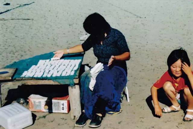 内蒙古自治区锡林郭勒盟阿巴嘎旗的牧民在做奶豆腐 刘书润摄于2003年