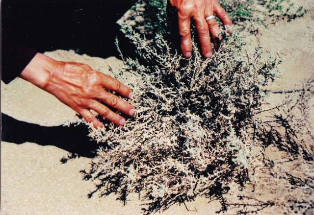 刘书润说荒漠里的灌木在冬天是存活的,并且含有一定水分,能固定沙土,而草本植物的叶子冬天就枯死了,所以相对来讲,荒漠比普通草原稳定,反而不容易退化,这也正是为什么荒漠的载畜量反而比典型草原稍微高一些的原因。