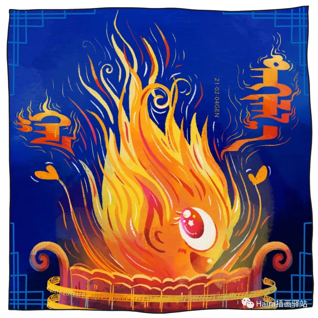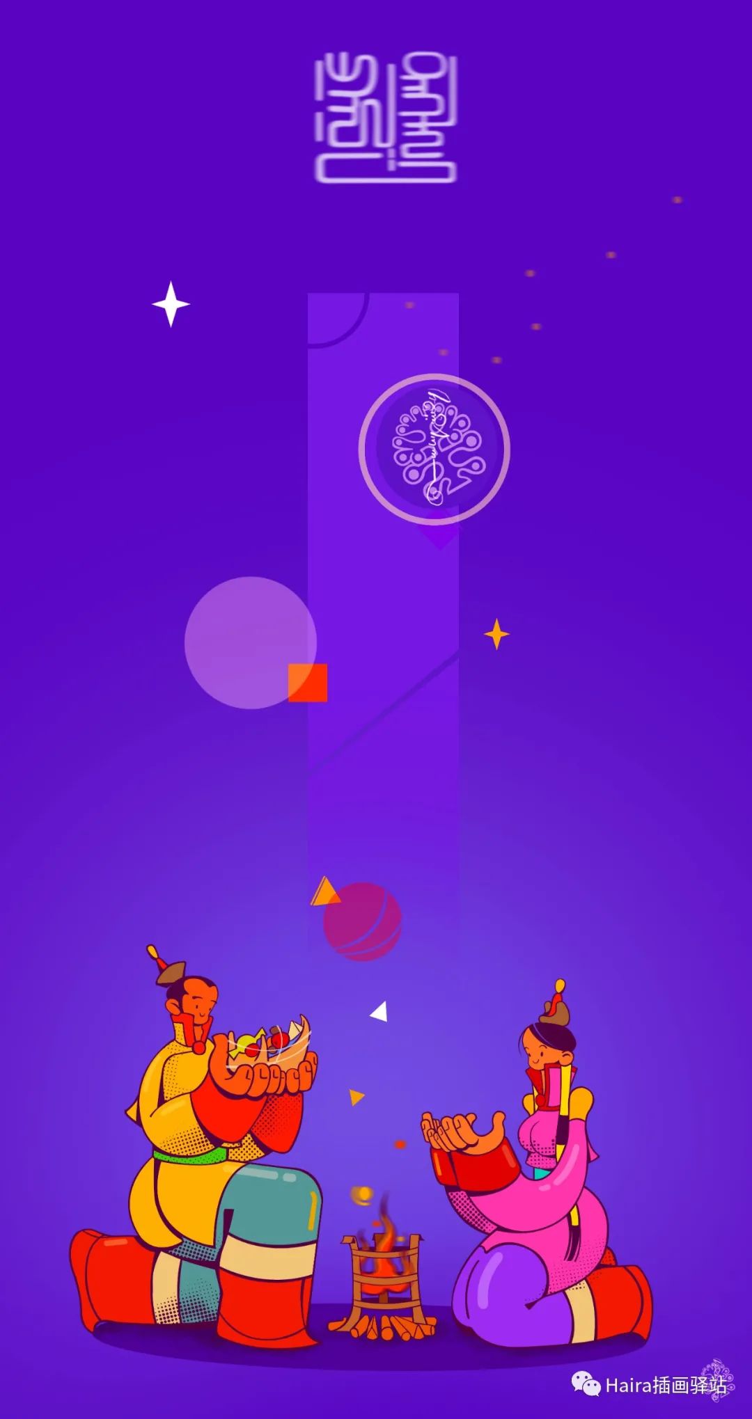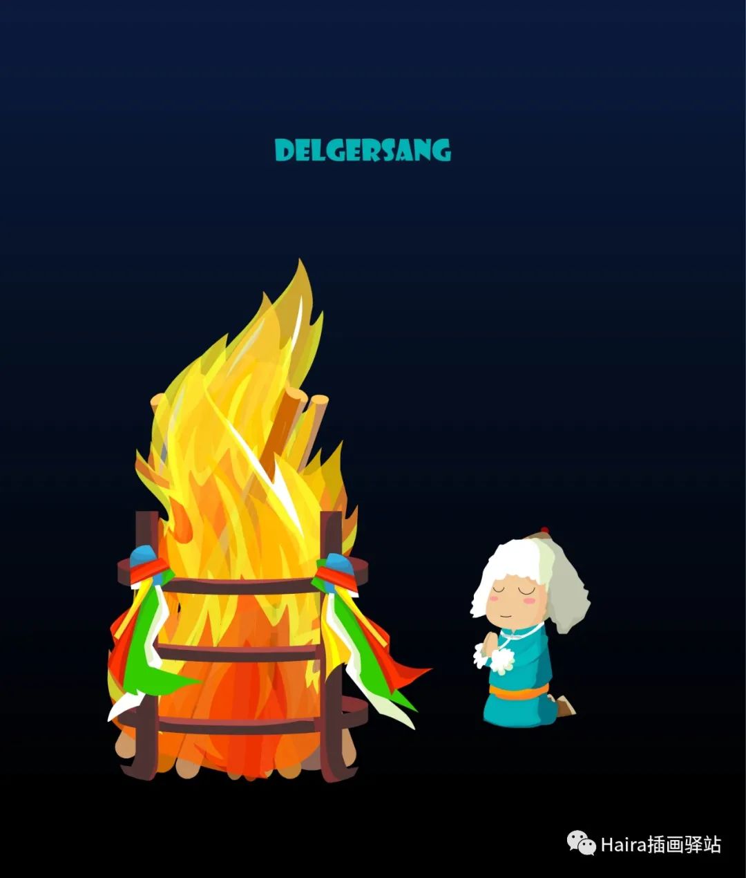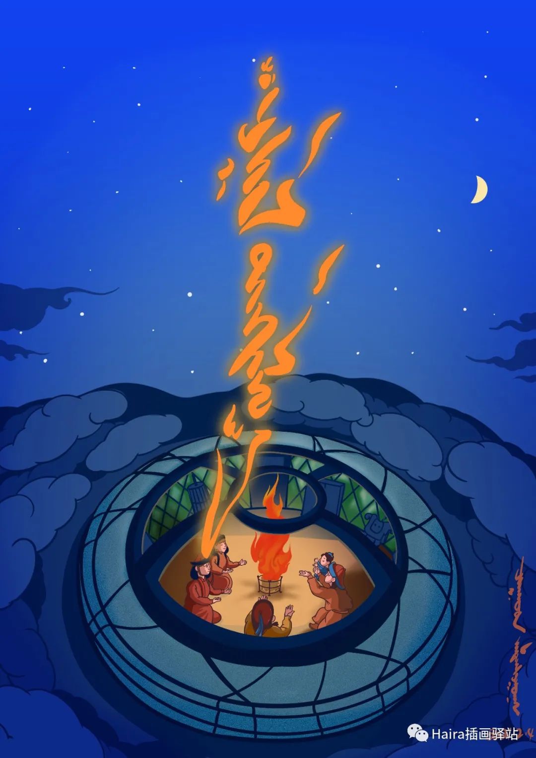 祭火仪式对一个蒙古族家庭来说是一项非常重要的活动,那么插画师们将怎么将这神圣的仪式表达在画面上的呢?