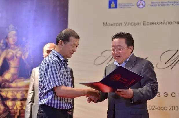 日前,由总统资助的“蒙古工匠艺术展”在乌兰巴托市蒙古艺术画廊举行,共展出100多件作品,有20件作品为工匠大师珍贵品。工艺制作是蒙古民族的传统,从古代起一直同行于游牧王朝、可汗和贵族,小至一颗纽扣都是不可重复的民族艺术,因此,本次展览是传统工艺品的涵盖。总统查希亚.额勒贝格道尔吉感叹:“蒙古人的祖先是多么伟大,看到匈奴时期的文物真是感到惊讶,看到这些珍奇的文物让人觉得当时的文明已经发展到了高水准。蒙古大汗们有了那个时代的工匠大师,技艺又是如此的精湛。一代名师文都尔葛根扎纳巴扎尔之前就有伟大的工匠师,在成吉思汗时代,乃至匈奴时期就有工匠艺人,所以,工匠艺人的手艺才能传承几代或几百年。”他还说,仿制文都尔葛根扎纳巴扎尔作品的人不仅在蒙古乃至全世界都没有。可以说,这些艺术品中融进了蒙古人民的精华,这么好的文化就在我们的血液里,我们会把这么好的文化传给后代,所以说蒙古人是伟大的。不能按人口来衡量一个民族,而是用其创作的文化来衡量,在文化方面不存在发达与不发达国家之分。”