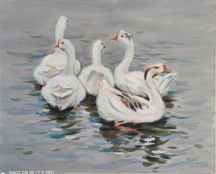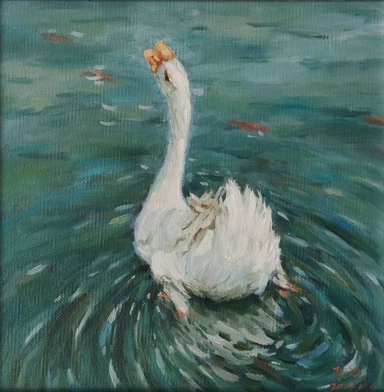 油画 《蘭亭鹅池里的鹅》