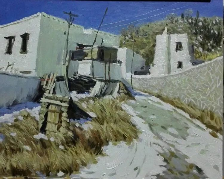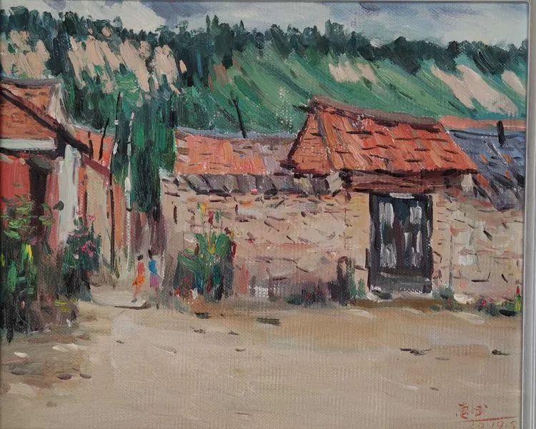 油画 《村景》