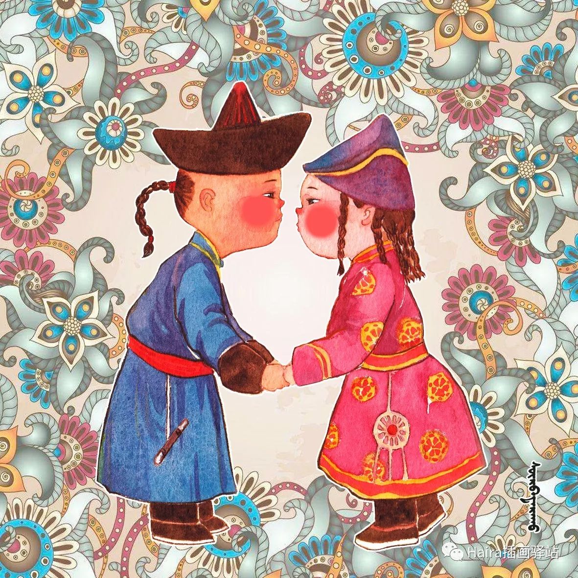 一直以来对呼伦贝尔地区的各个蒙古部落以及三少民族很感兴趣。2017年年底,在工作之余,我终于下笔开展了又一个系列插画——布里亚特系列。