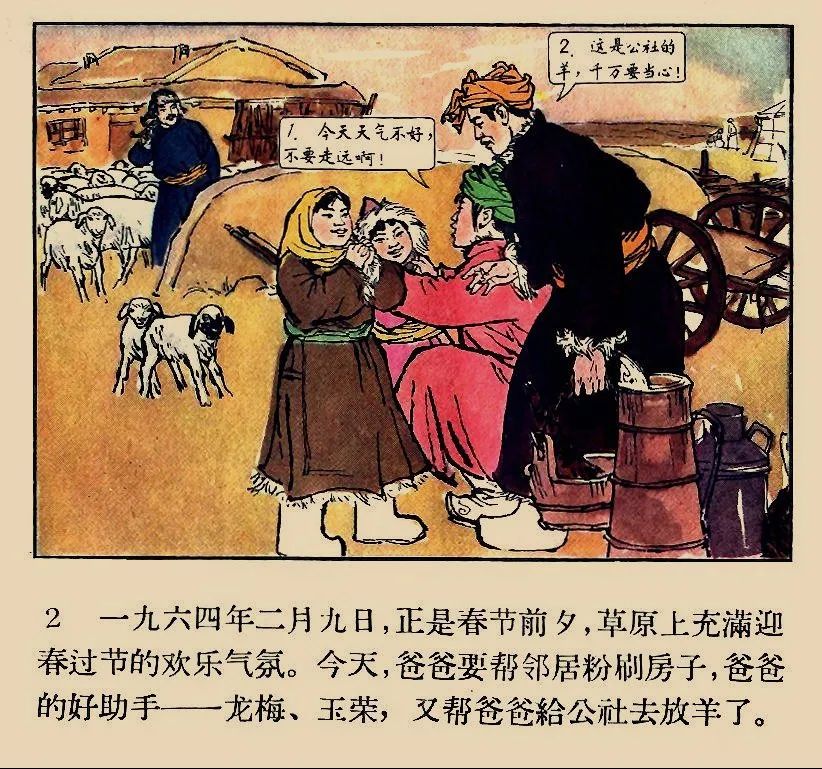 一九六四年二月九日,正是春节前夕,草原上充满迎春过节的欢乐气氛。今天,爸爸要帮邻居粉刷房子,爸爸的好助手——龙梅,玉荣,又帮爸爸给公社去放羊去了。