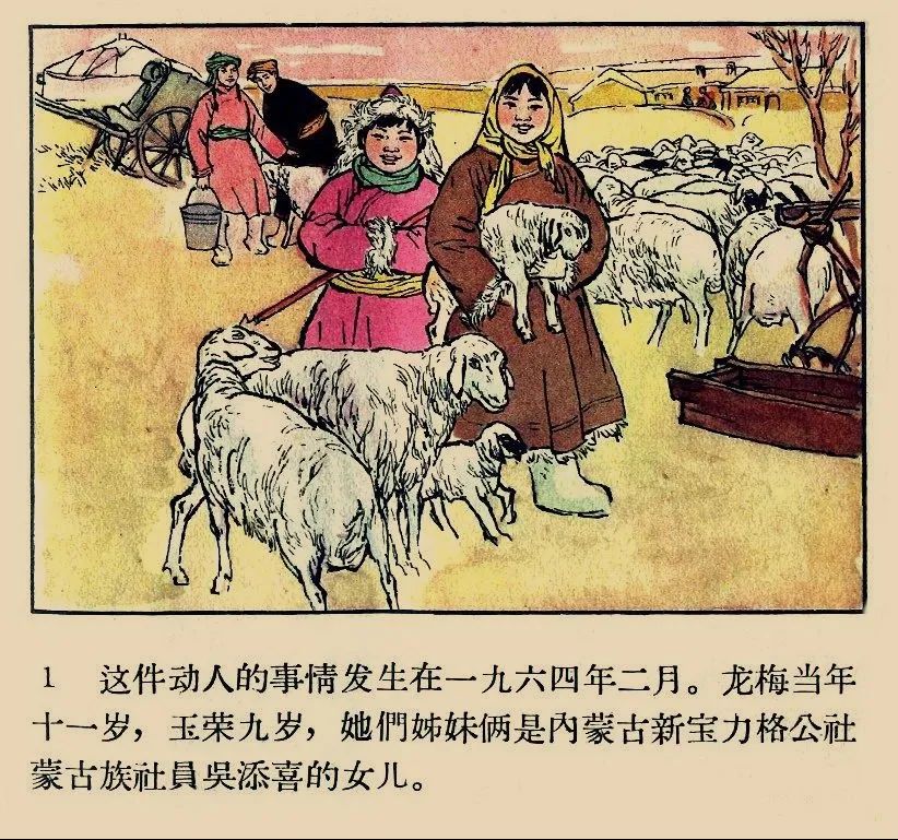 这件动人的事情发生在一九六四年二月。龙梅当年十一岁,玉荣九岁,她们姊妹俩是内蒙古新宝力格公社蒙古族社员吴添喜的女儿。