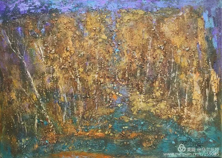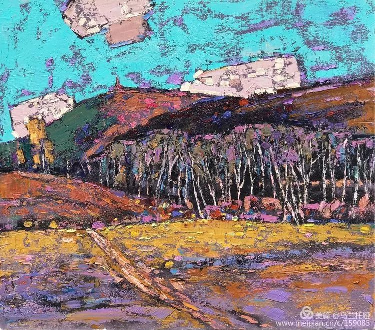 《元上都白桦林》120x100cm 你一直在画 心里只有画 涌动的渴望牵引着你 更替着生命的色彩 单纯 阻隔了庞杂的沁染 真诚 褪落了乔饰的繁复 热爱 焯烁着你一生的所爱
