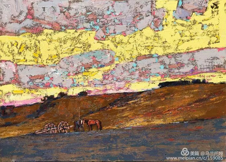 《卓伦高勒》90x130cm 艺术创作的基础是自由、热爱和想象力。是对心灵感应的倾听与倾诉,是在自然中寻找回归本性的自我,感受来自灵魂深处的召唤。
