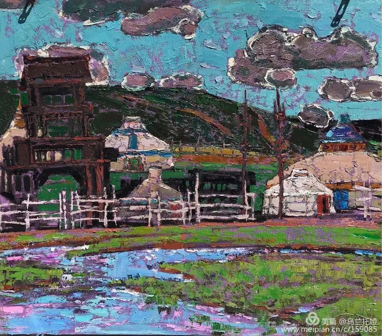 《那日图苏木》130x90cm 走自己的路,唱自己的歌。艺术本就该是自由的。艺术创作如果参杂了虚伪和造作,失去了本真。画的再精准,也必将是匠人之作庸人之品。